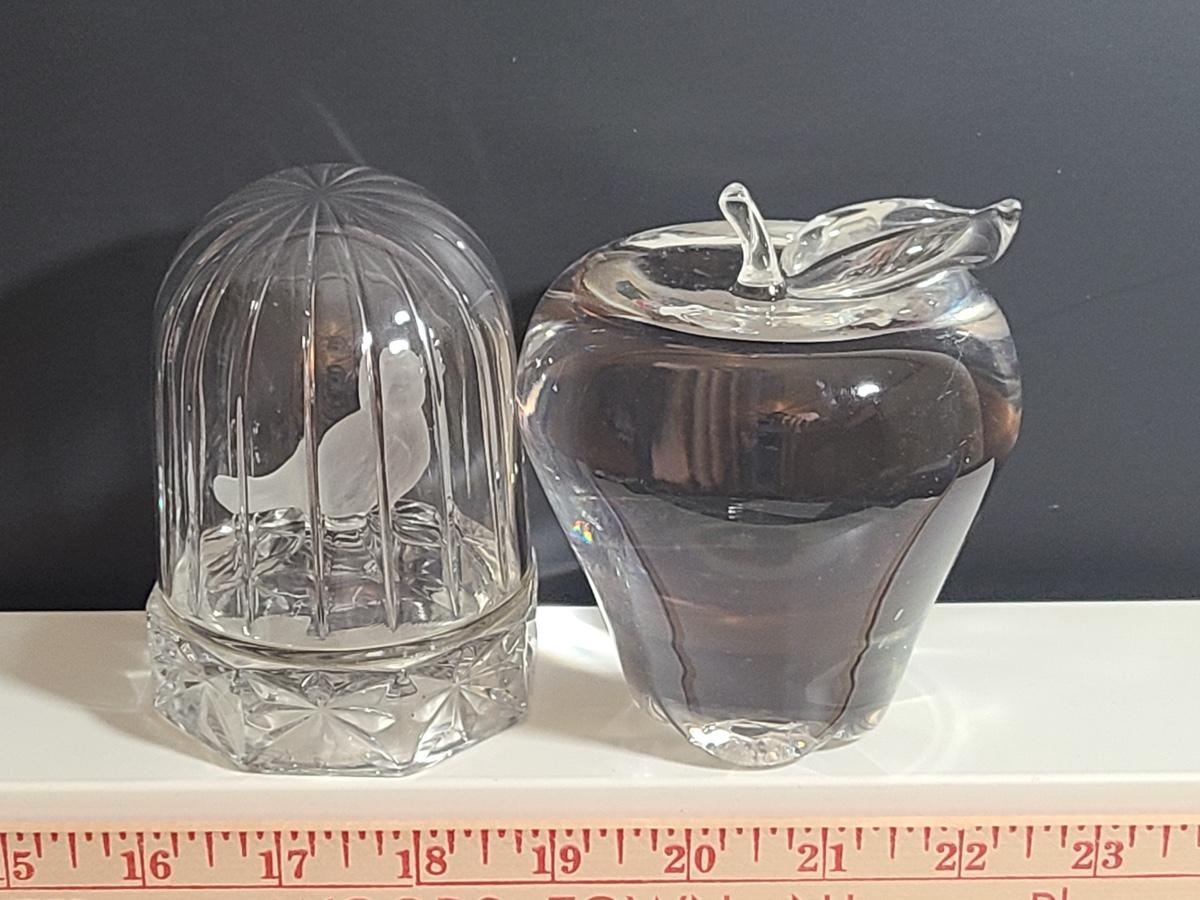 Lot 7575: Large Lenox Apple & Hofbauer Bird Cage Paperweights