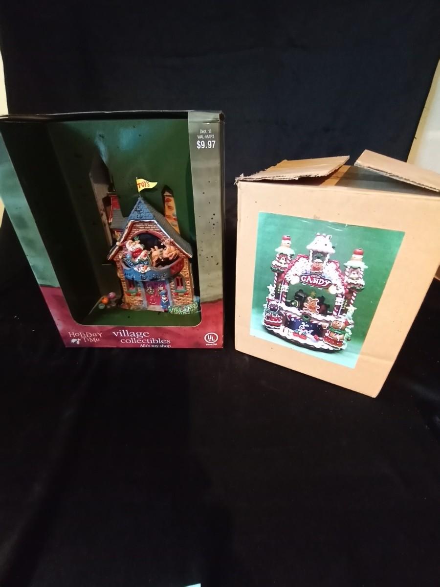 LIGHTED VILLAGE COLLECTIBLE "ALLIS TOY SHOP" AND "CANDY SHOP" BY KURT S ADLER