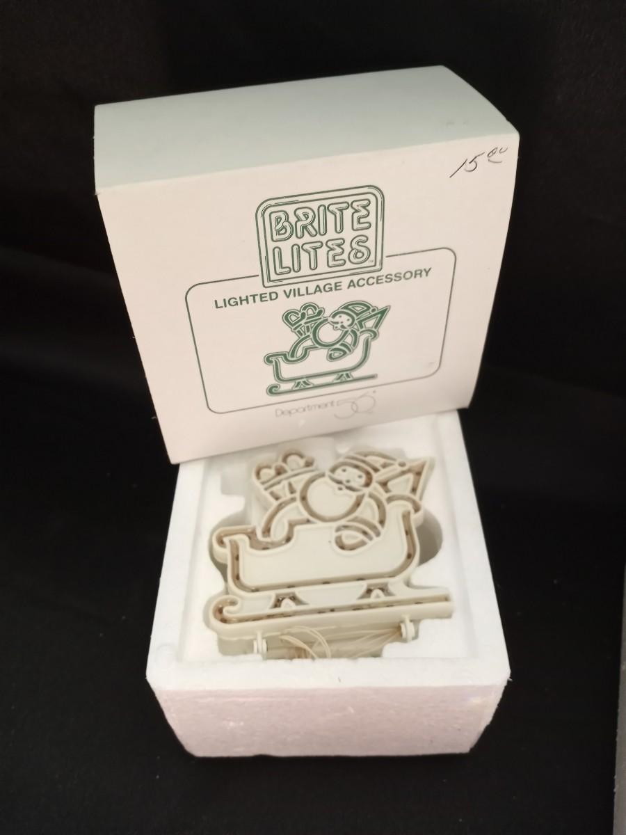 BRITE LITES LIGHTED VILLAGE ACCESSORIES SANTA ON SLEIGH AND BELL