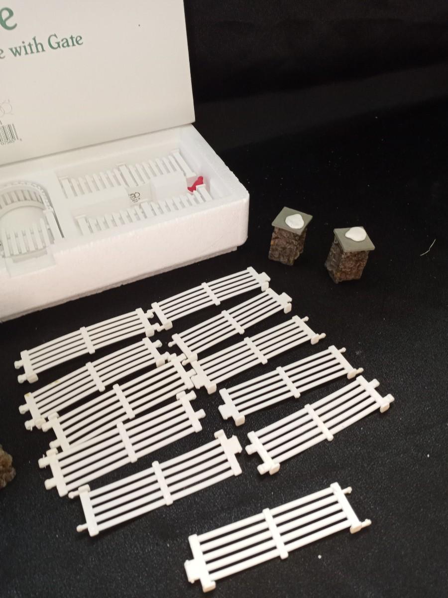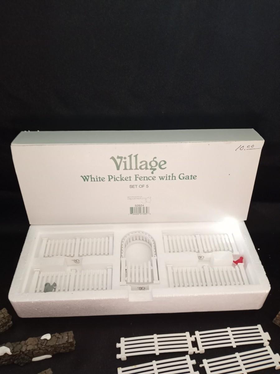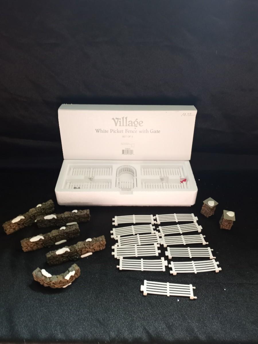 VILLAGE WHITE PICKET FENCE WITH GATE AND OTHER FENCING PIECES