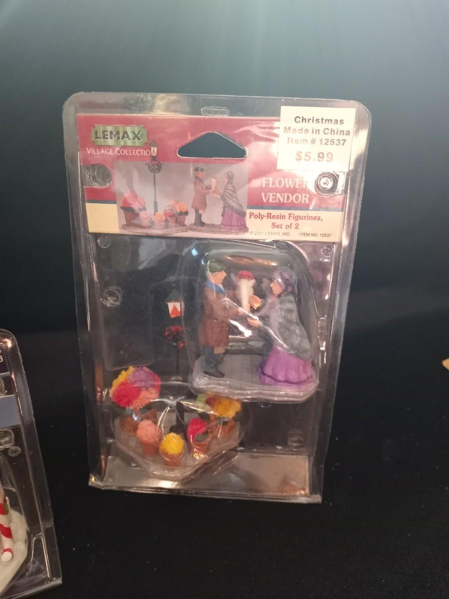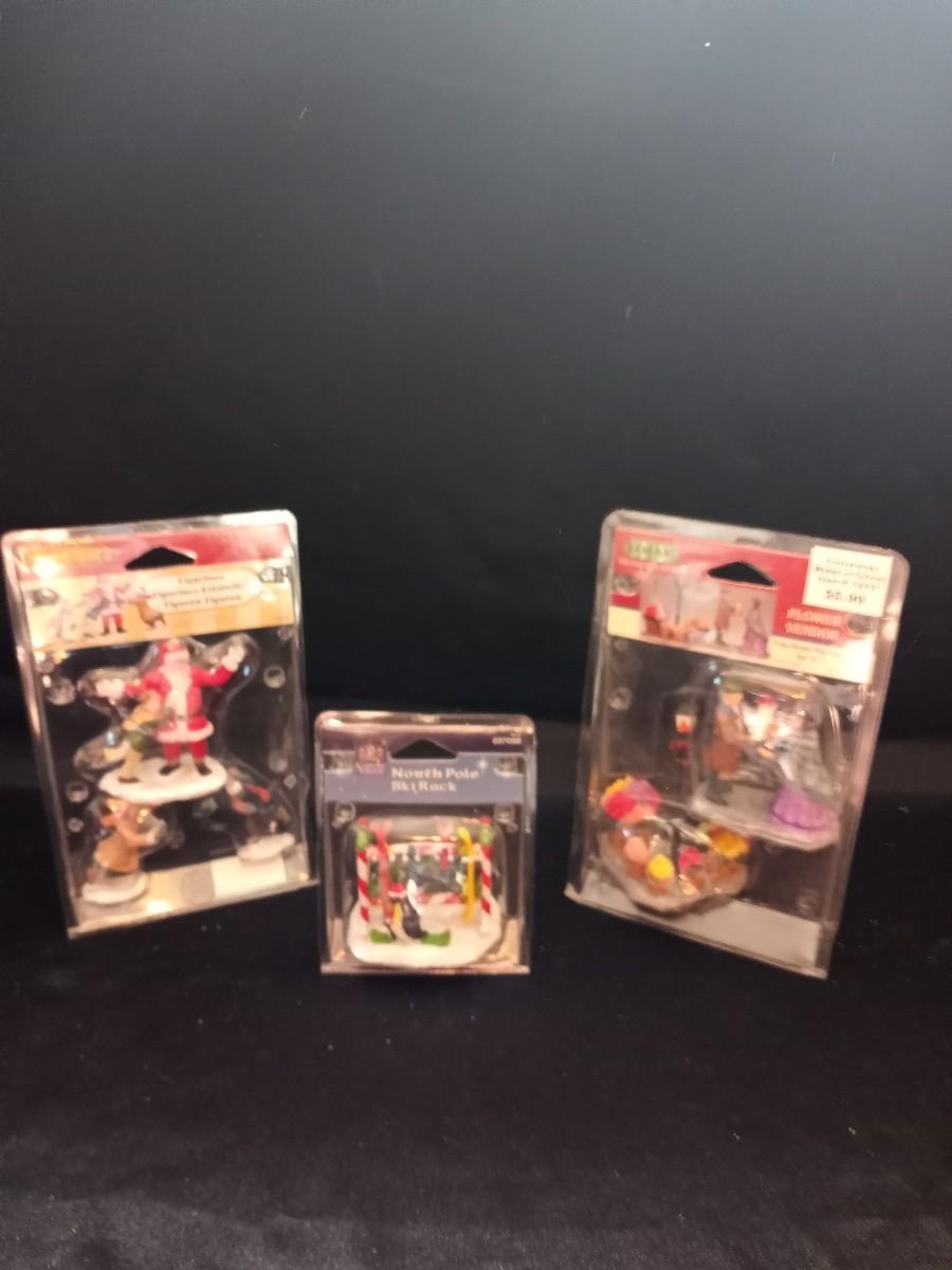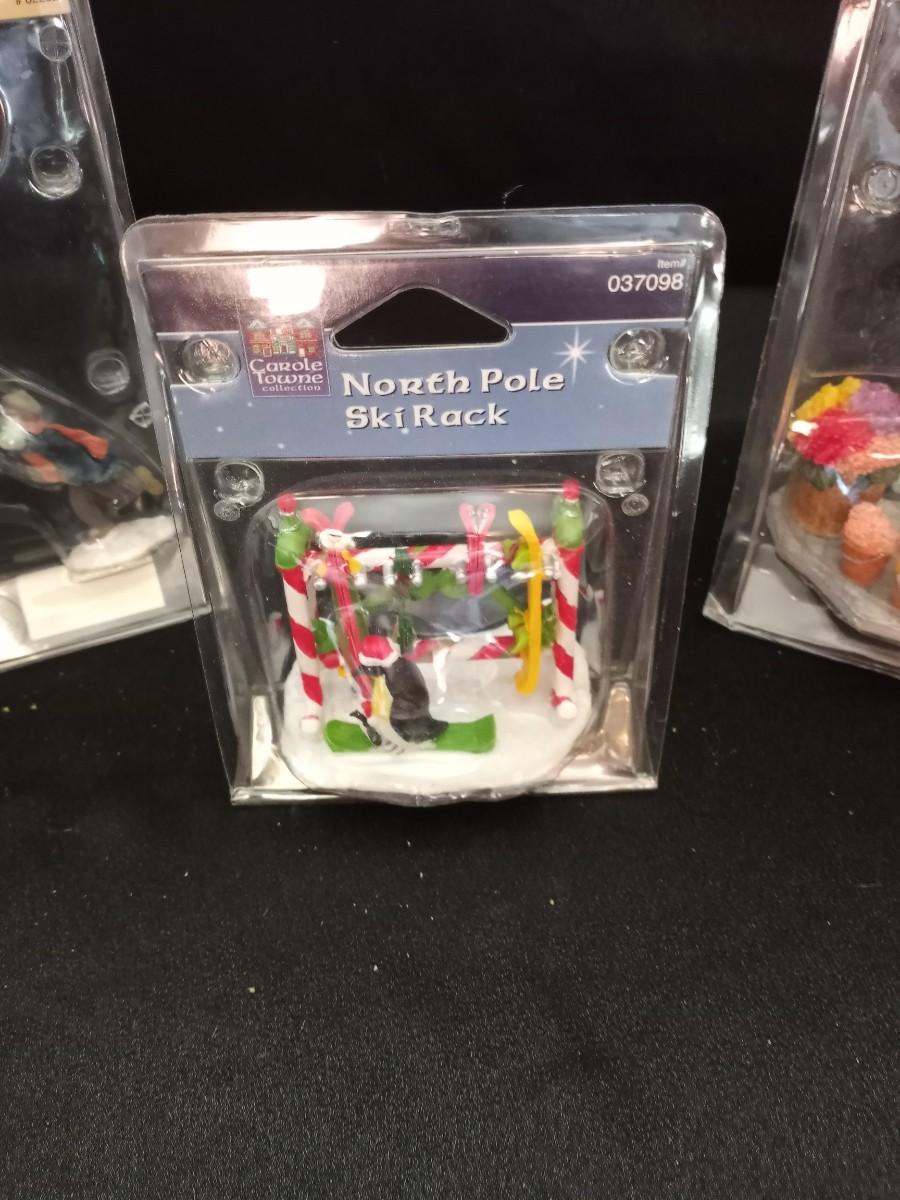 VILLAGE NORTH POLE SKI RACK -SANTA-FLOWER VENDER ALL NEW IN PACKAGE