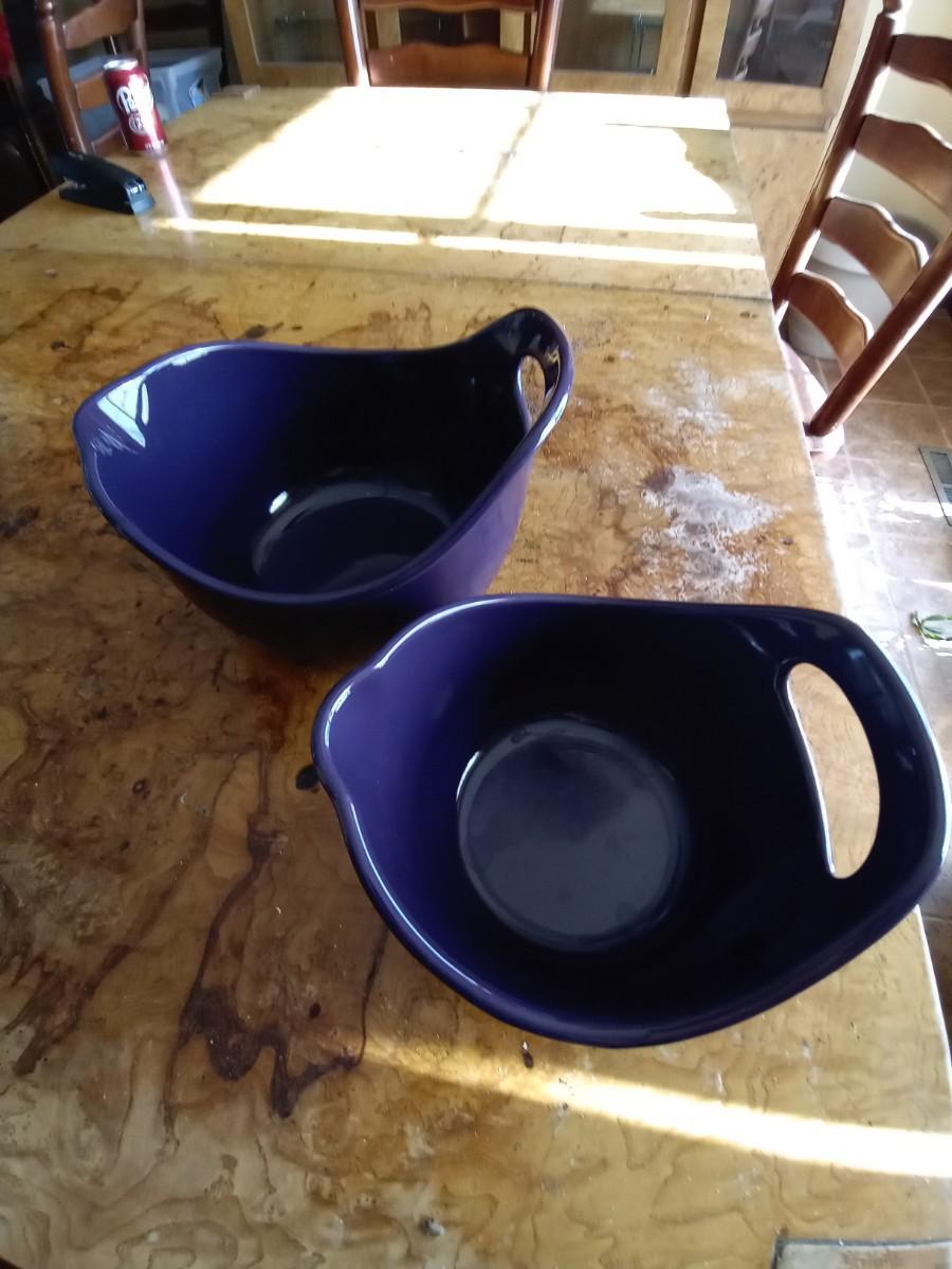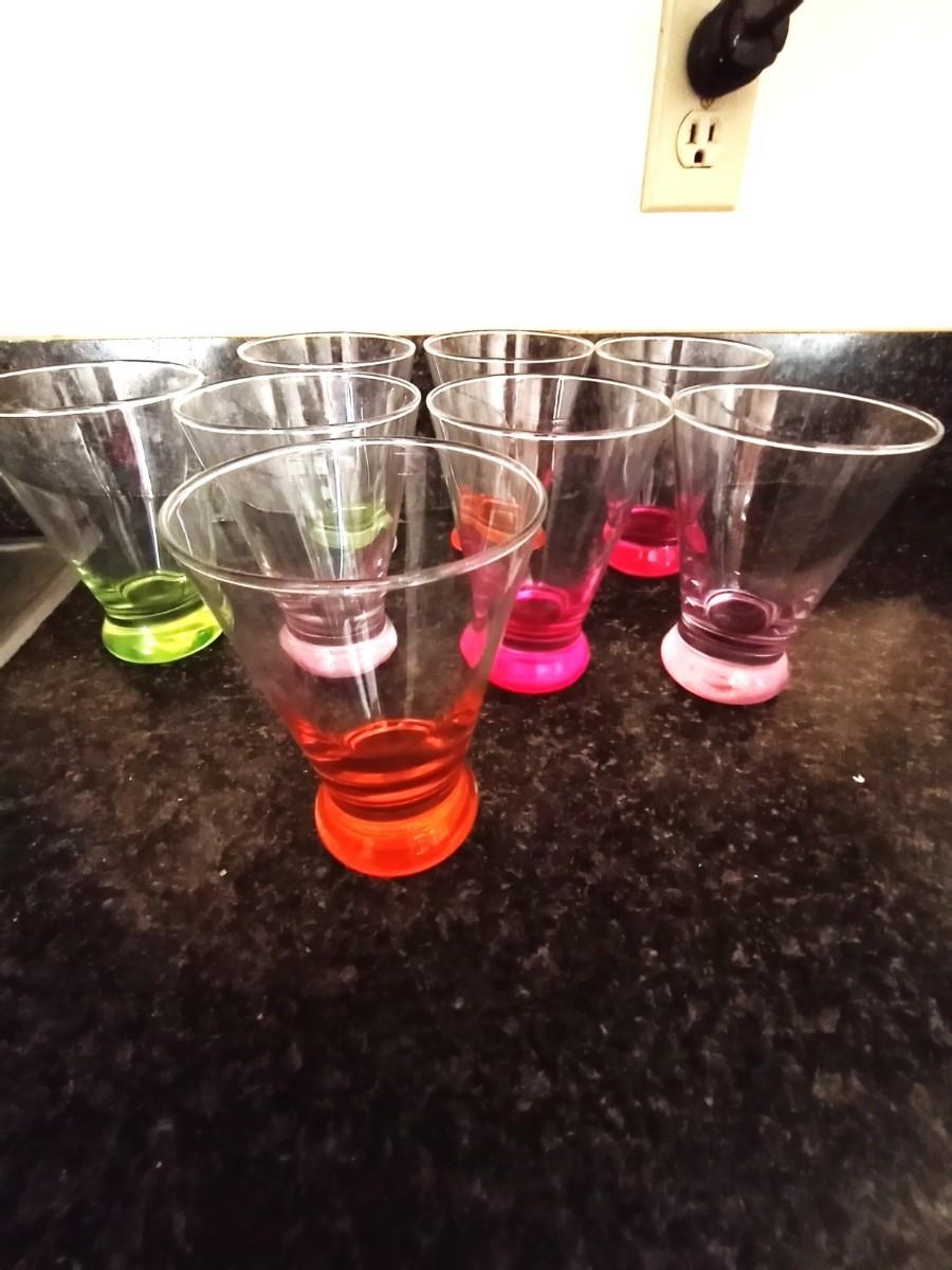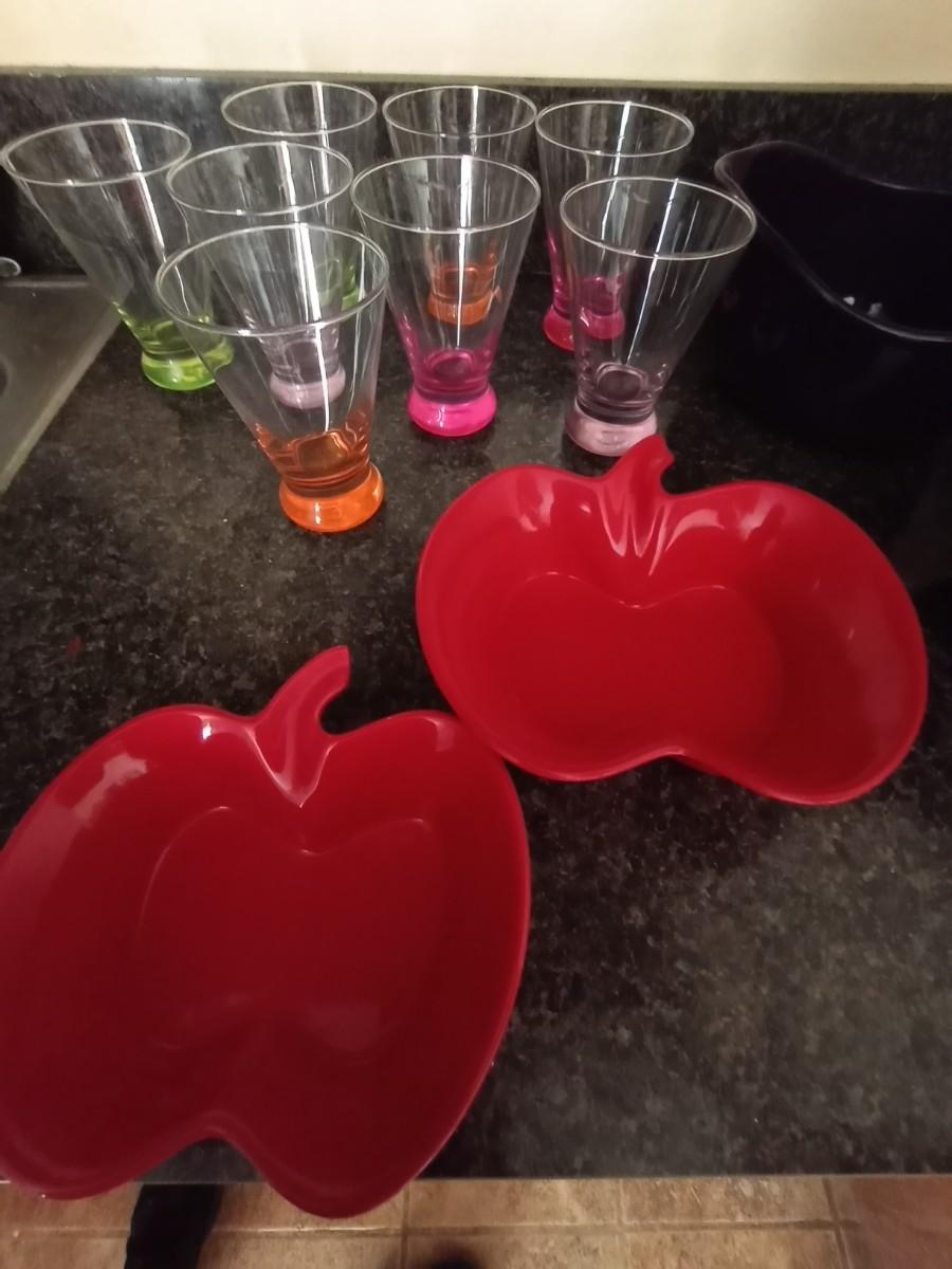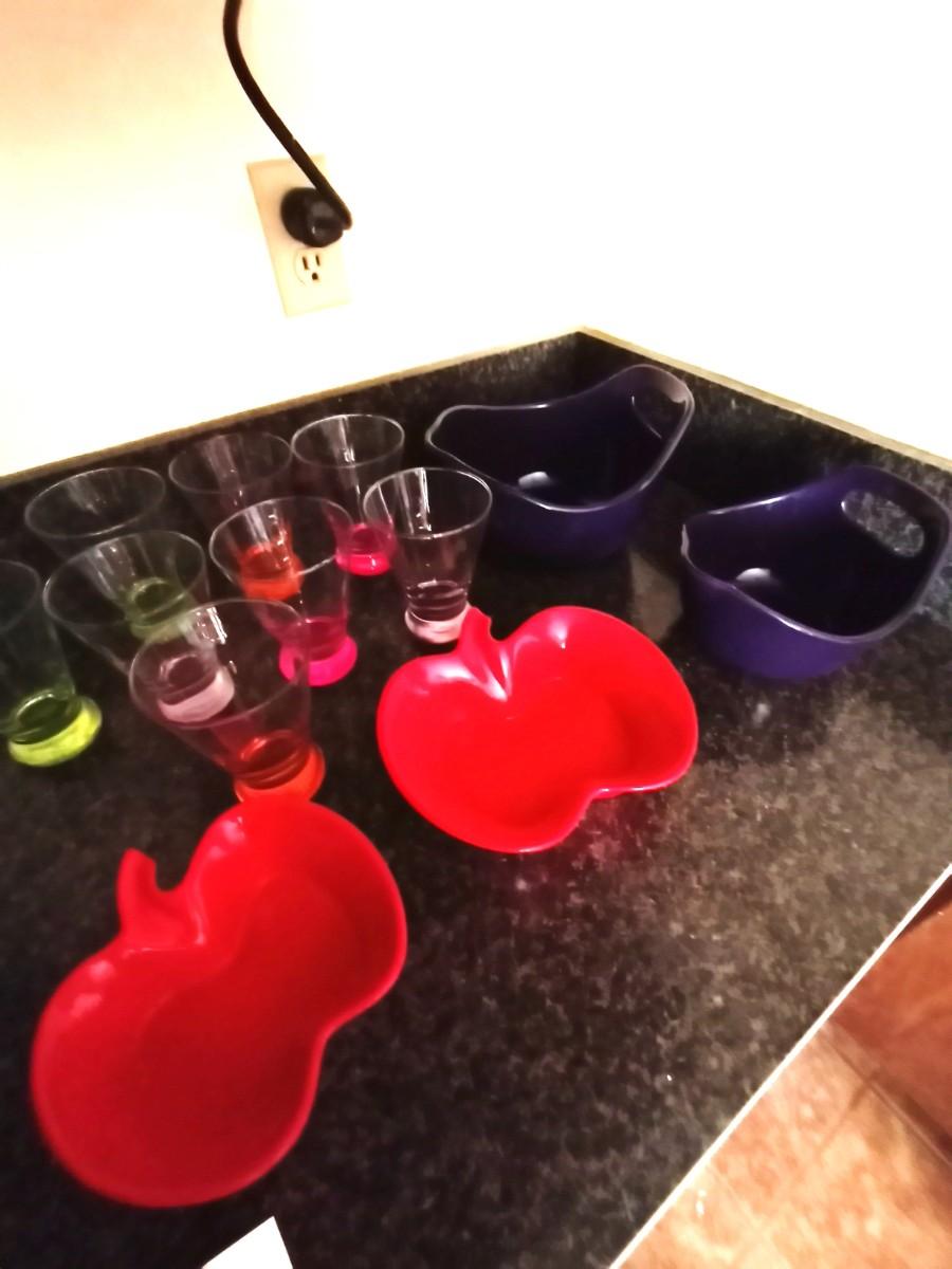 LOT 549 NEON COLOR DRINKING GLASSES-APPLE AND PURPLE BOWLS