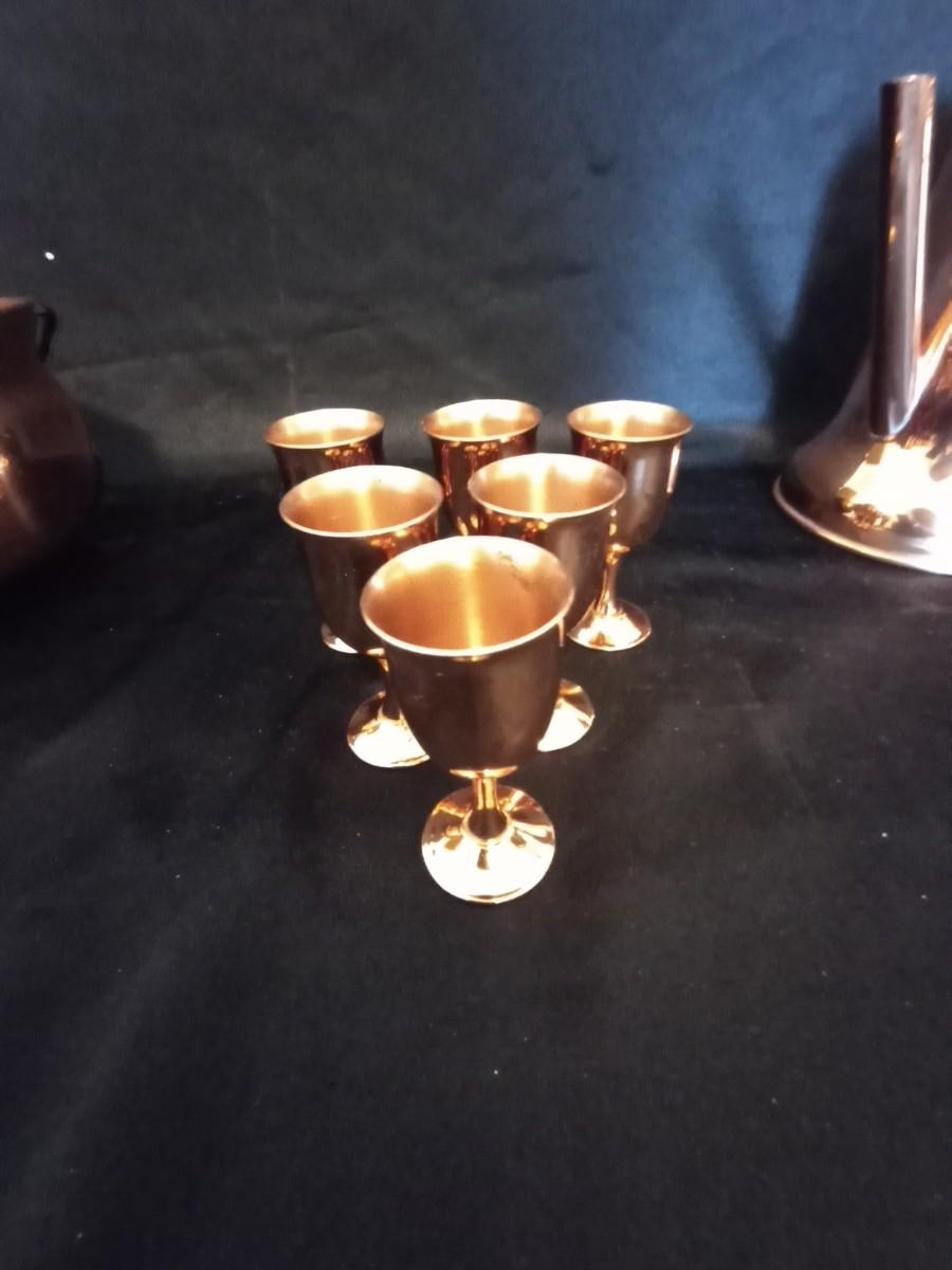 LOT 462  COPPER CRAFT STEMWARE, BOWLS AND COFFEE POT WITH WOOD HANDLE