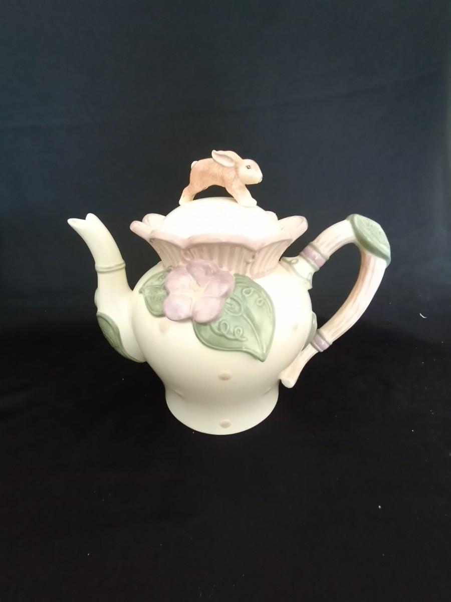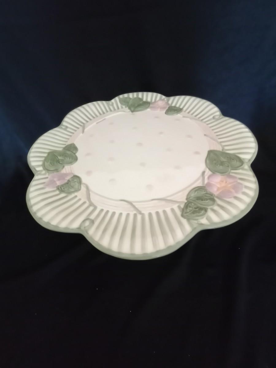 WESTBOROUGH CROSSING CAKE PEDESTAL 12" ROUND AND TEAPOT 10" TALL