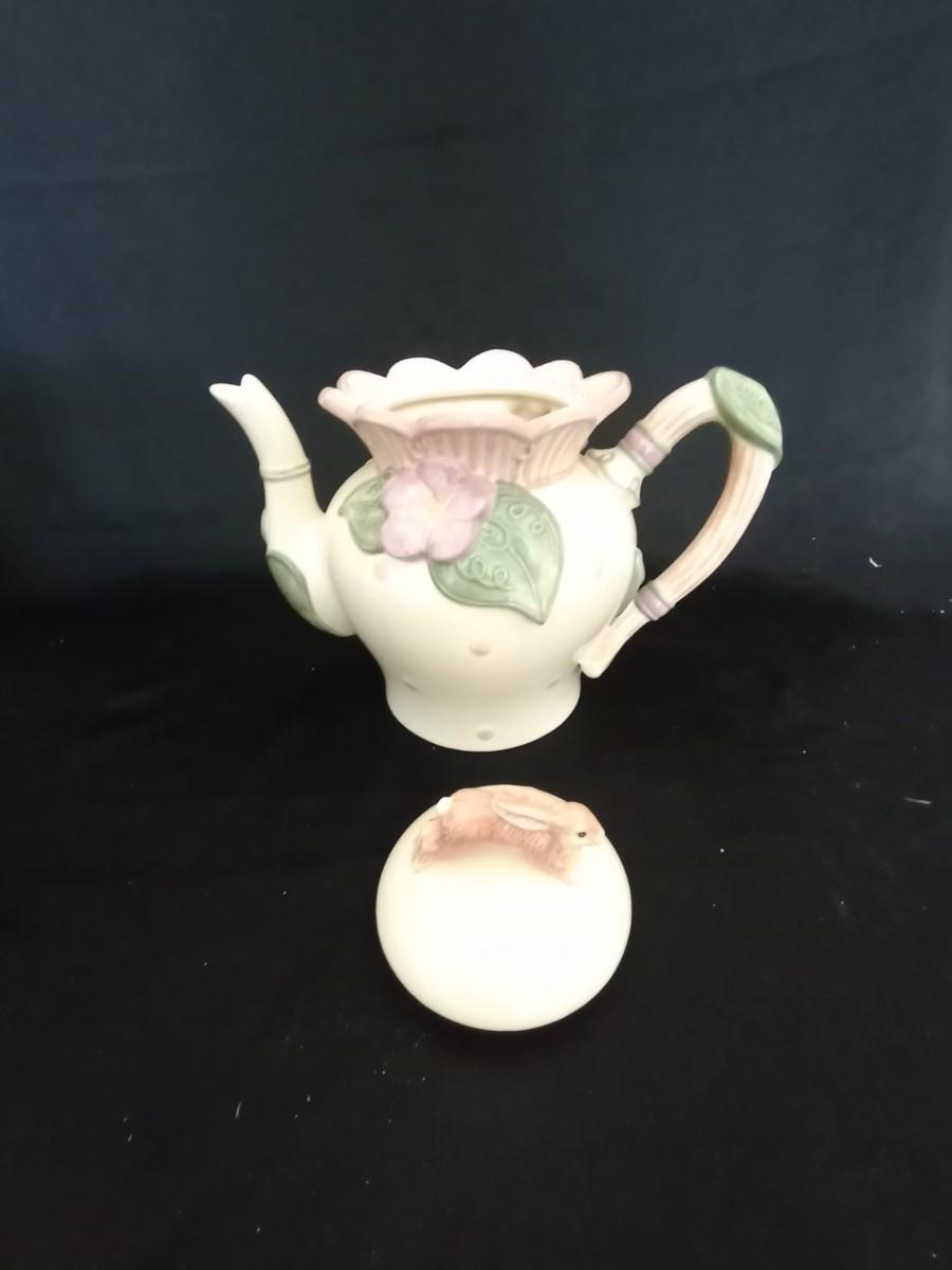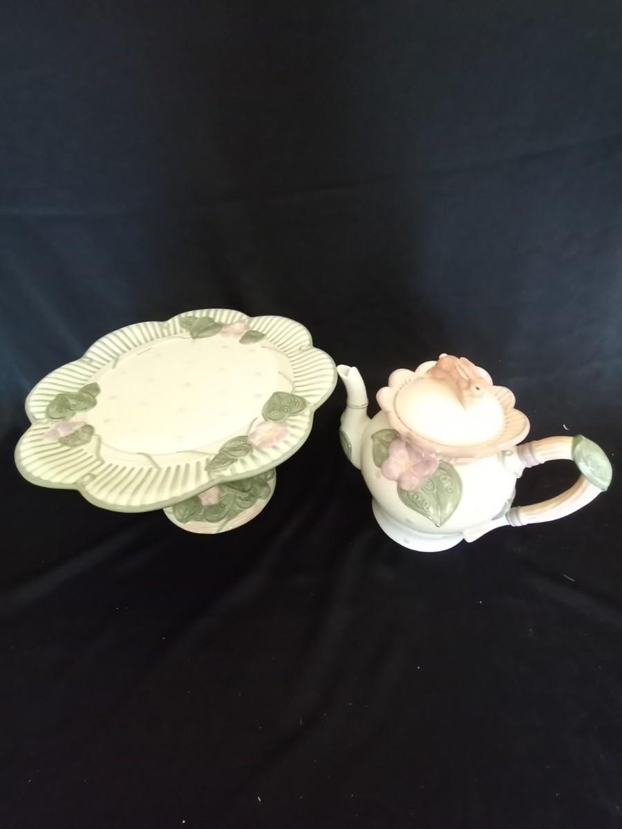 LOT 408 WESTBOROUGH CROSSING CAKE PEDESTAL AND TEAPOT