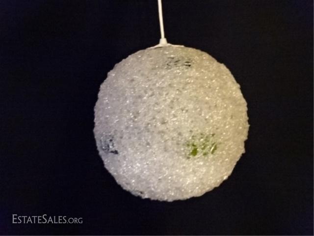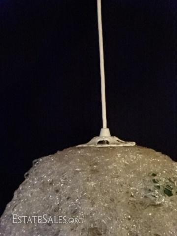 LOT 75A: MID CENTURY MODERN SPUN ACRYLIC PENDANT LAMP, CIRCA 1960's, CLEAR ACRYLIC STRING WITH BLUE AND GREEN ACCENTS, VERY GOOD CONDITION, APPROX 116"W, SKU355