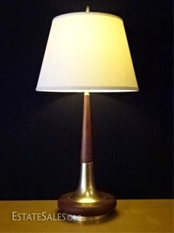 LOT 75D: MID CENTURY MODERN WOOD AND BRASS LAMP