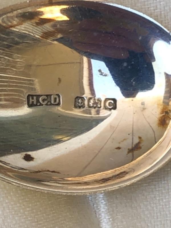 Lot 75S. Six English Antique Birmingham Sterling Silver Demitasse Spoons in case, made in England, black bean shape on end of spoon, enameled shell shape Art Deco Style “” $41.25