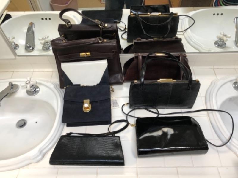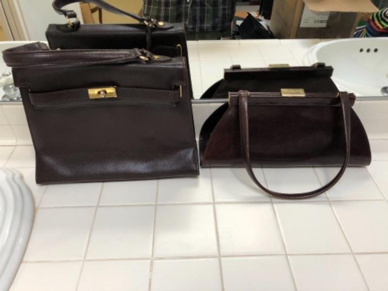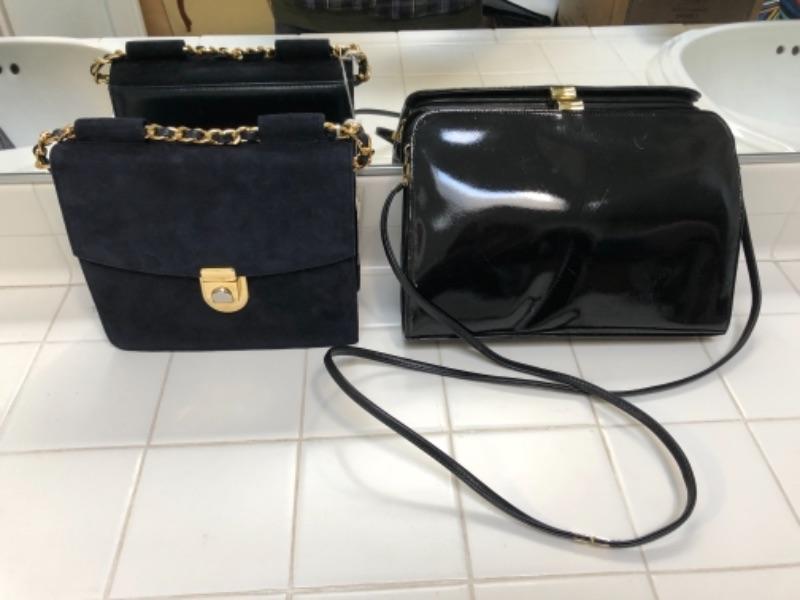 Lot 75U. Assortment of quality bags (2 Bruno Magli, 1 Brommel and Russell)“”suede, patent, lizard, black, brown and blue--$275