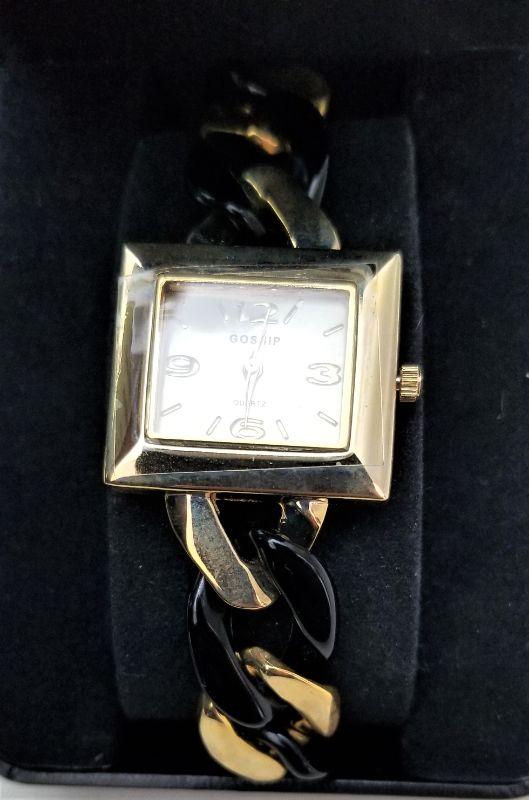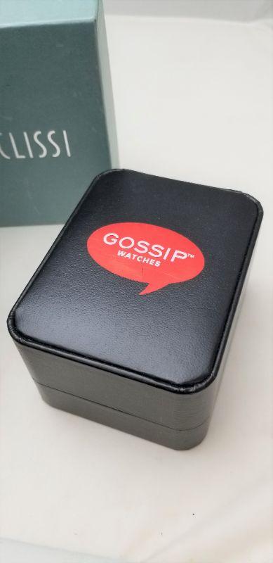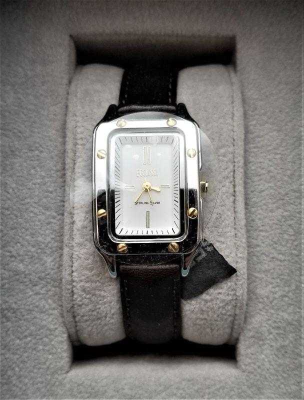 Ecclissi Sterling 2-tone watch with Nails head accents - strap watch purchased in 2007 at a cost of 64.70 - along with a GOSSIP watch - gold tone with black accents - quartz - both never used. Have been in storage - will need batteries.