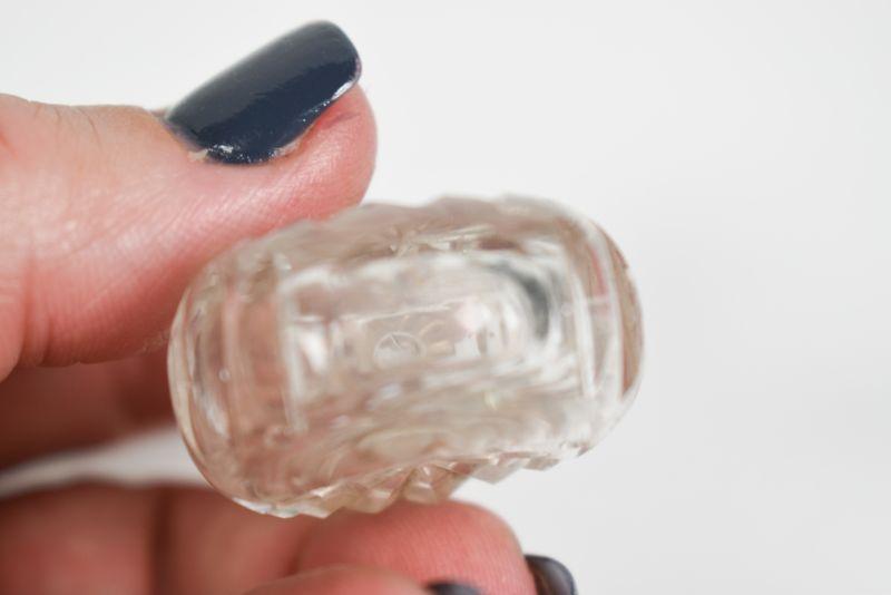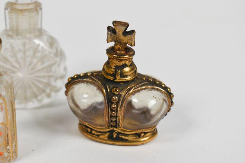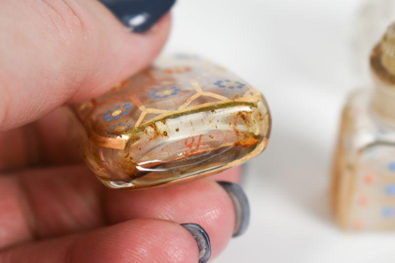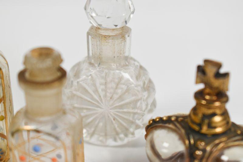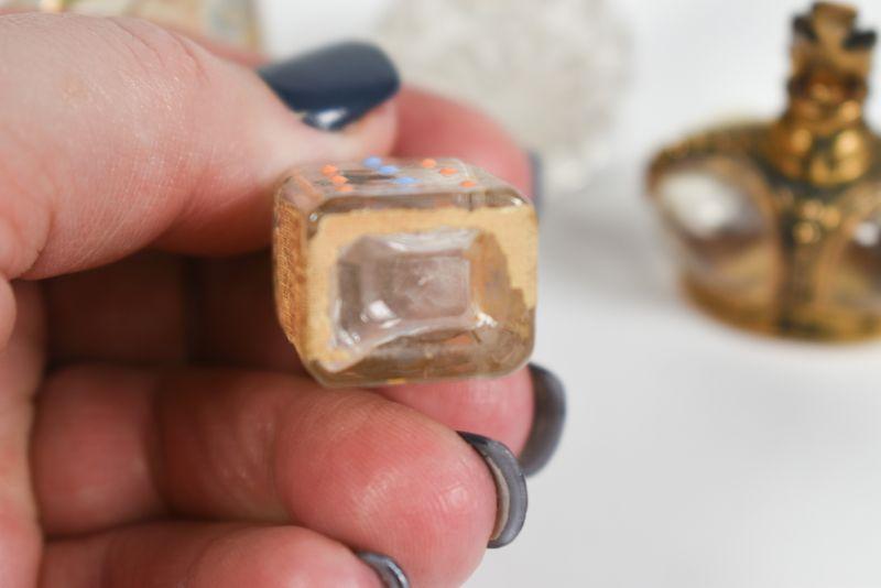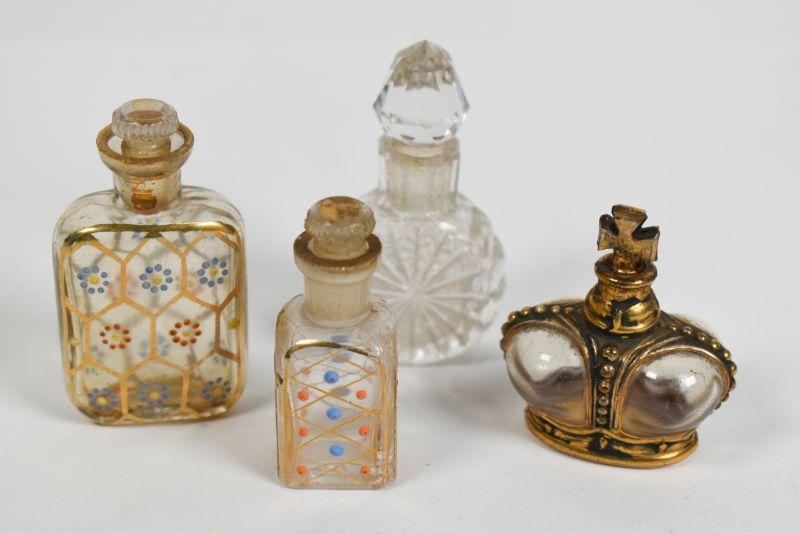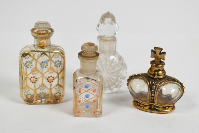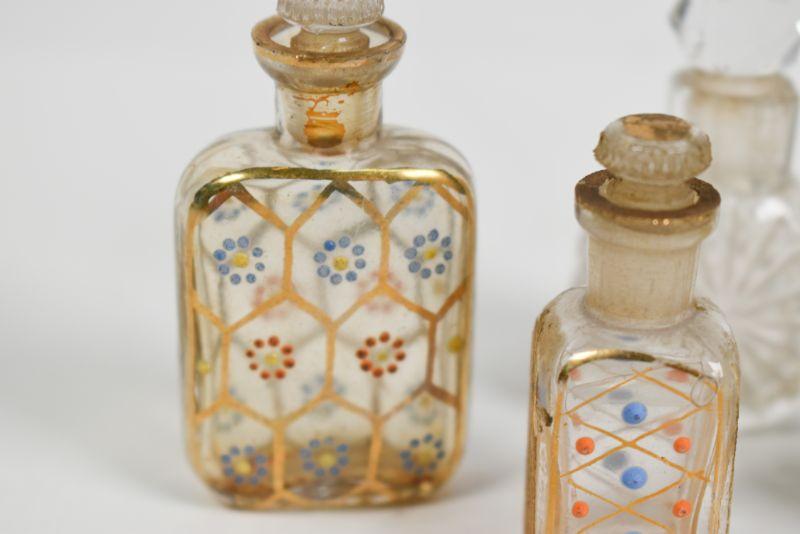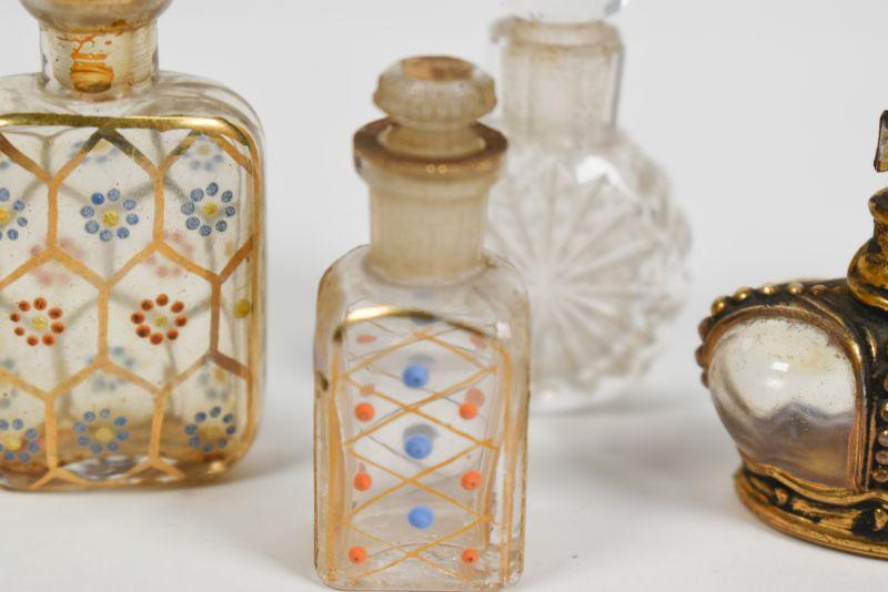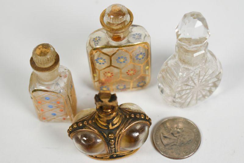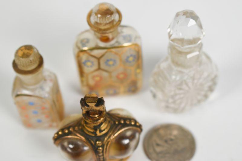 Small, glass perfume bottles, one from Prince Matchabelli. No chips. **Please read Terms and Conditions before placing a bid. Pick up is Sunday, December 22 from 11am to 3pm or Monday, December 23 from 4pm-7pm in Mantua, NJ. All sales are final. All sales are as is, where is. Please review all photos. Props are not included. Measurements are approximate.