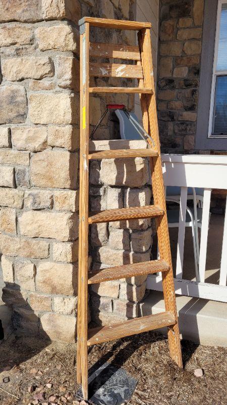 Lot 76: Vintage Wooden 6 Foot Type 3 Step Household Ladder