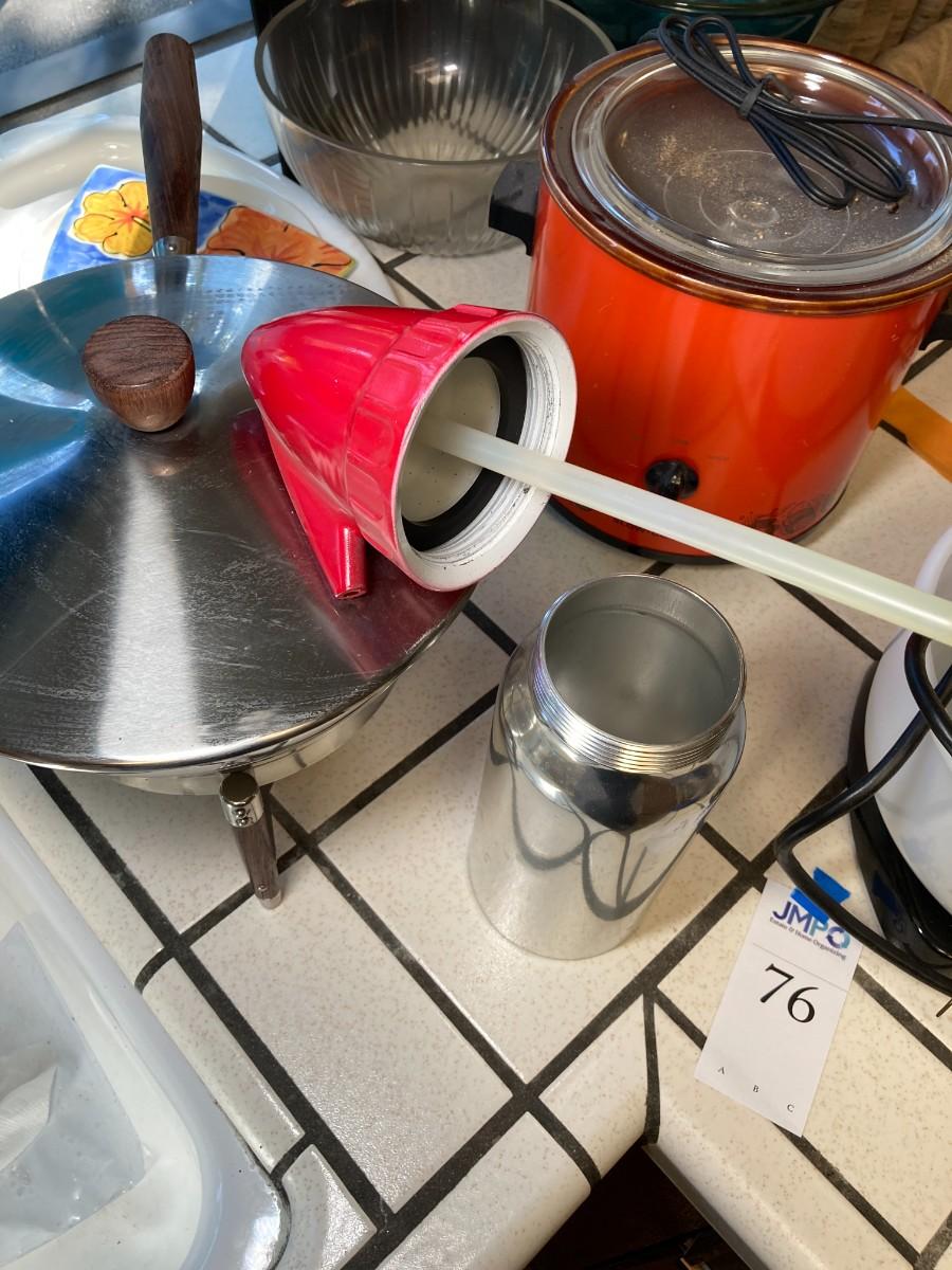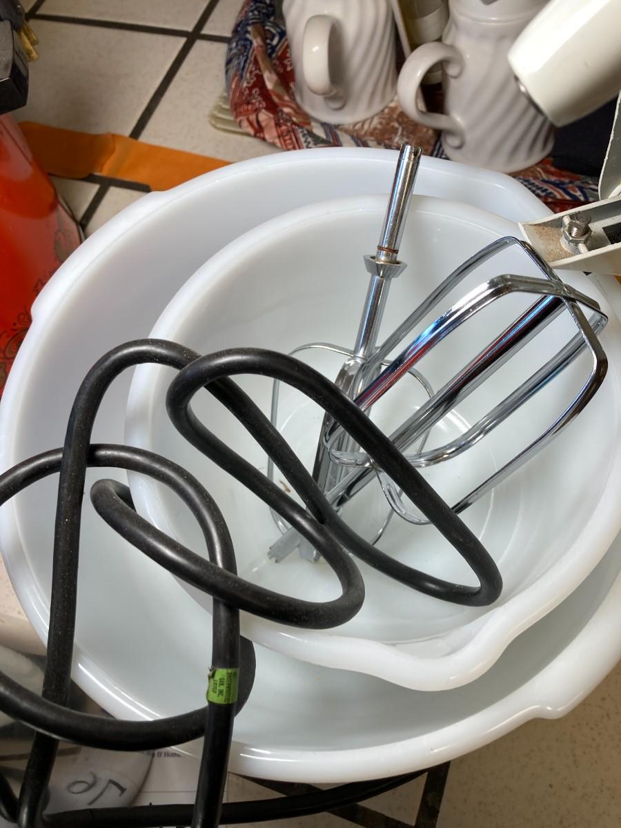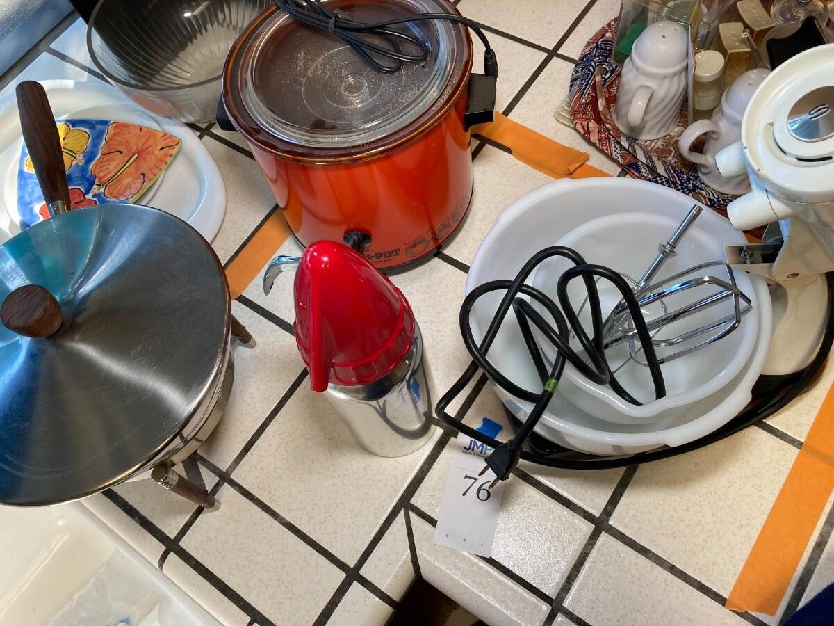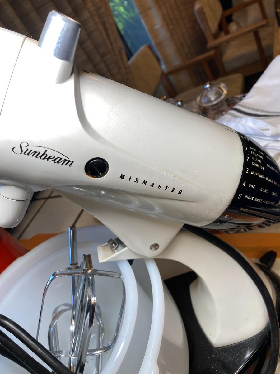 Rice cooker, Sunbeam stand mixer. Warming pan on stand. Whipped Cream dispenser - needs CO2 cartridge. None tested.