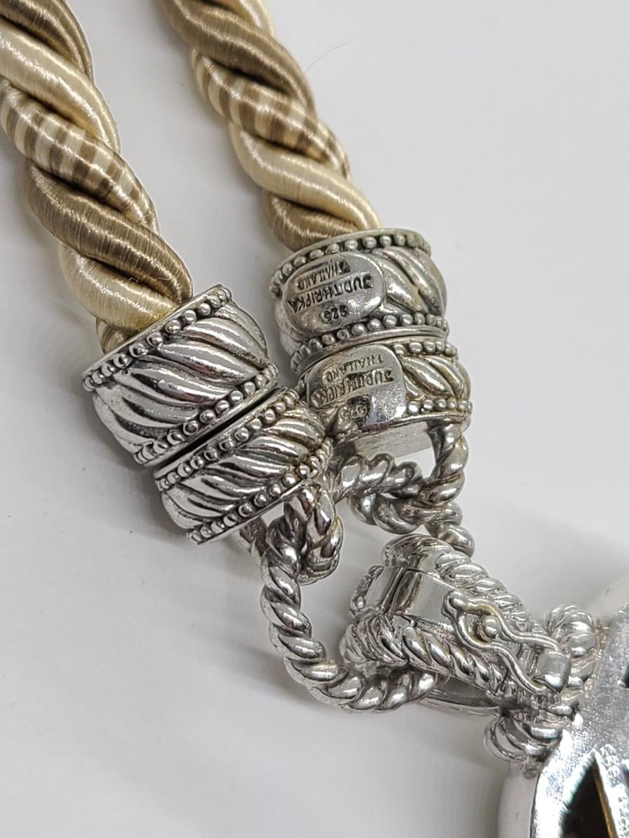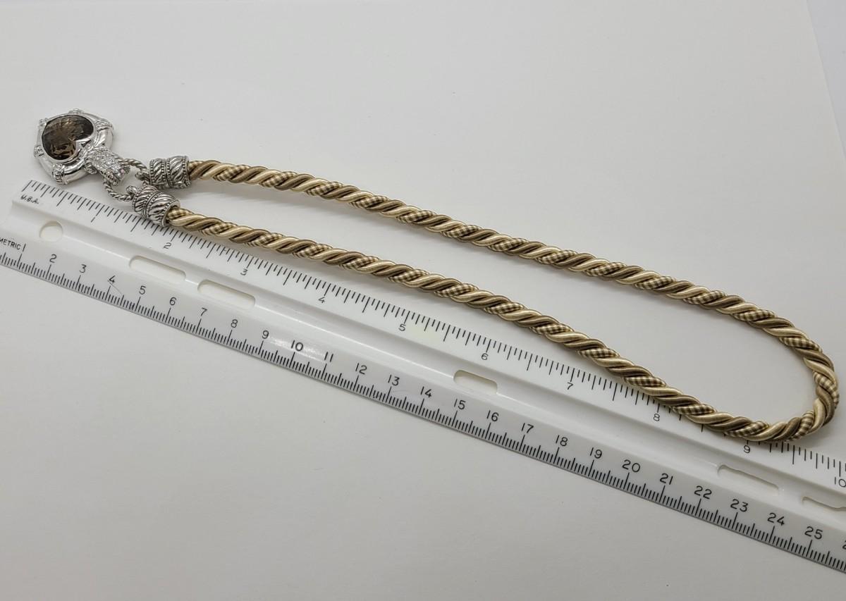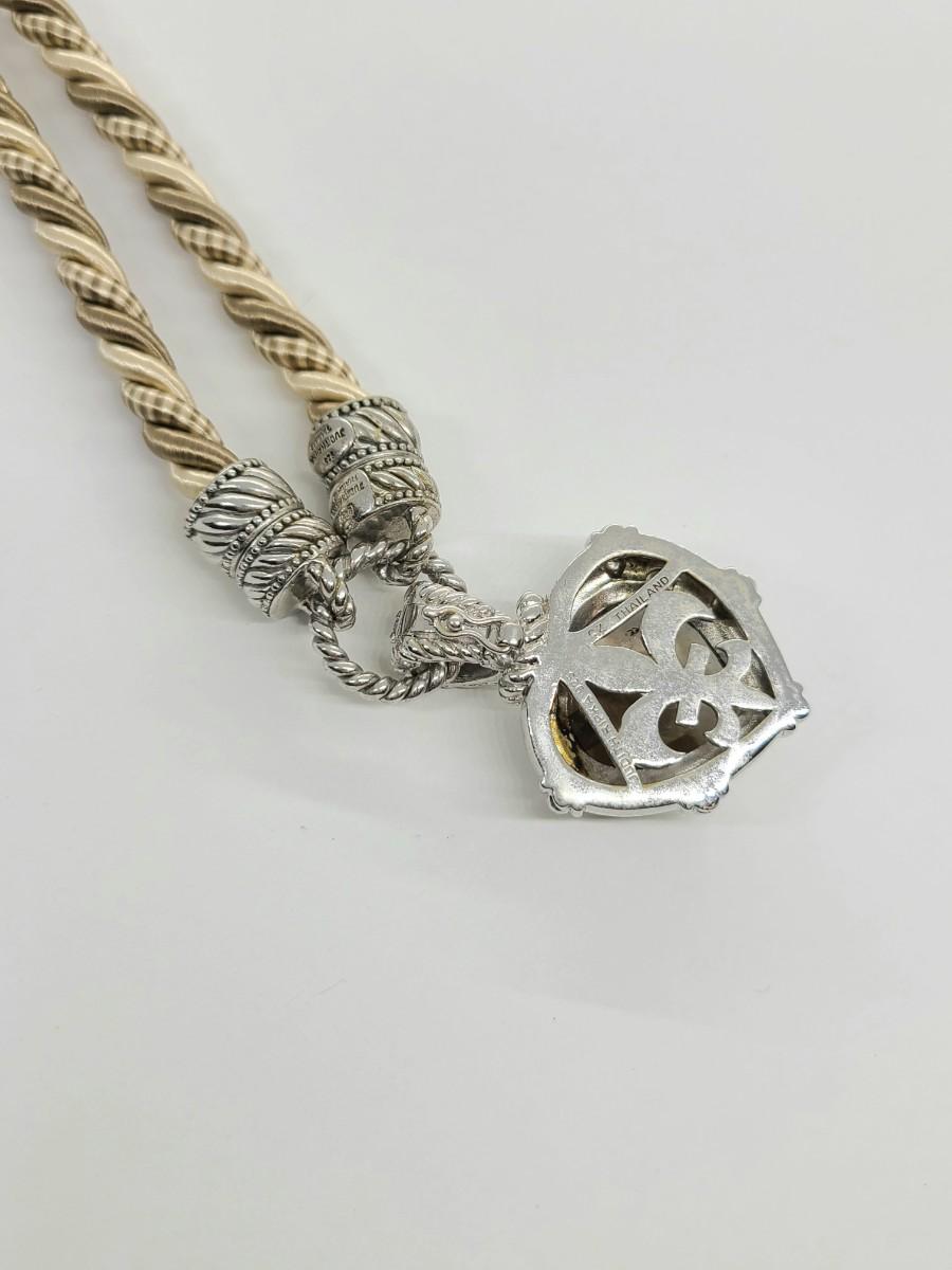 Includes pendant/enhancer and 18" two-tone gold tone cord. Preowned good condition.