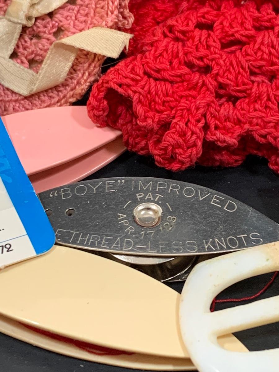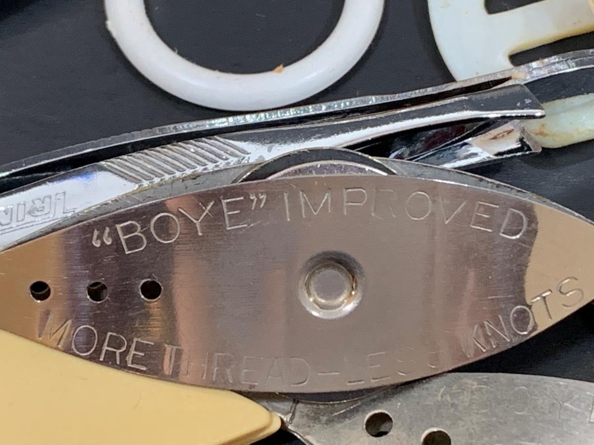 Lot 76: Sewing Notions: Antique Buttons. Vintage "Boye" Needle Threader, Golden Needle & More