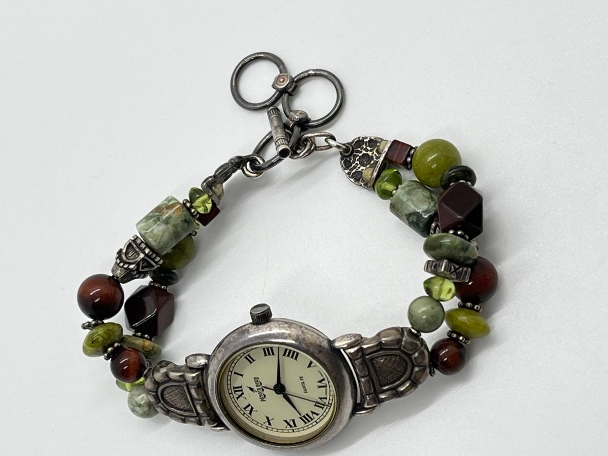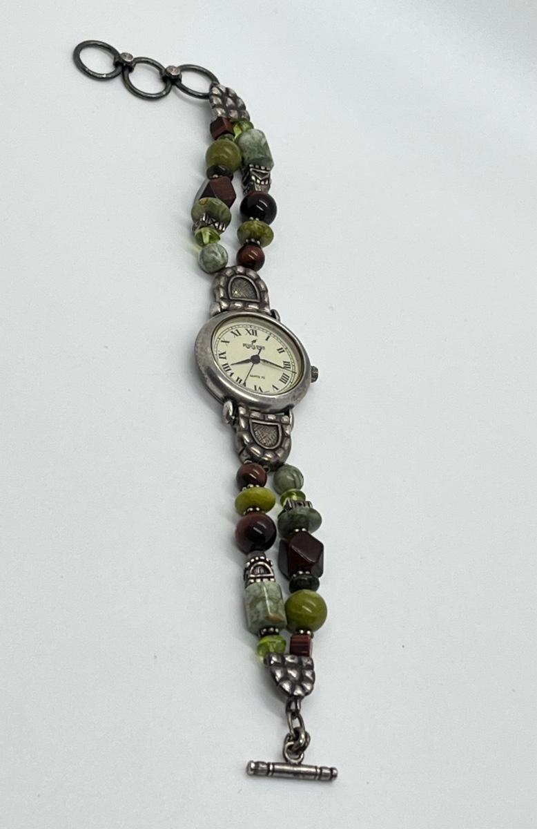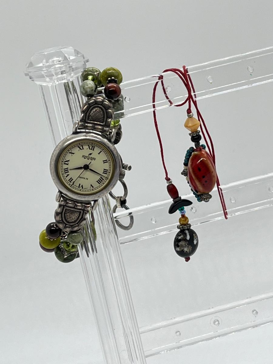 LOT 76: Raw Tumbled Gemstone Bookmark & Peyote Bird Watch (Needs Battery)