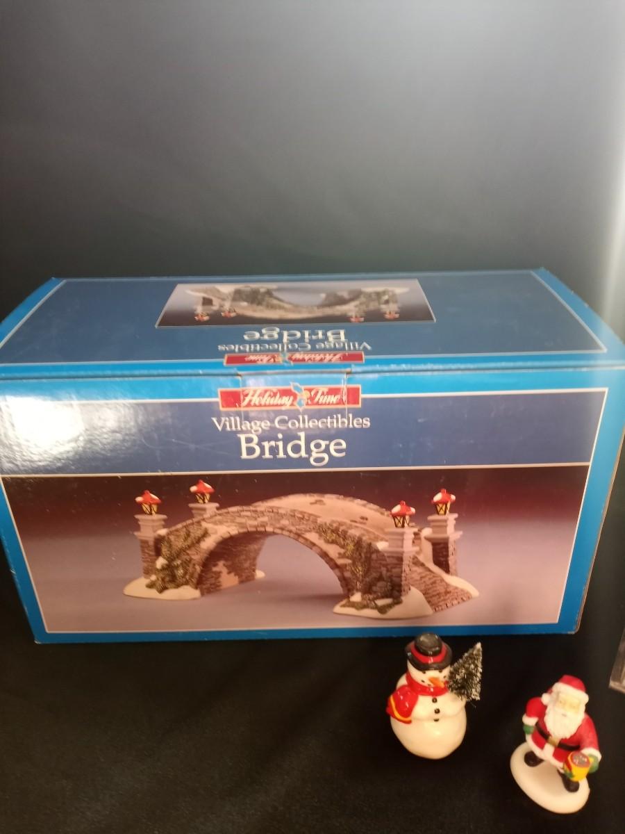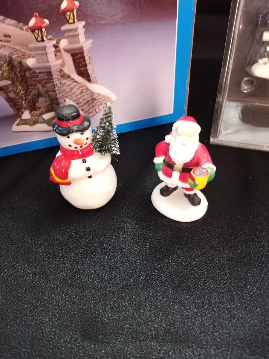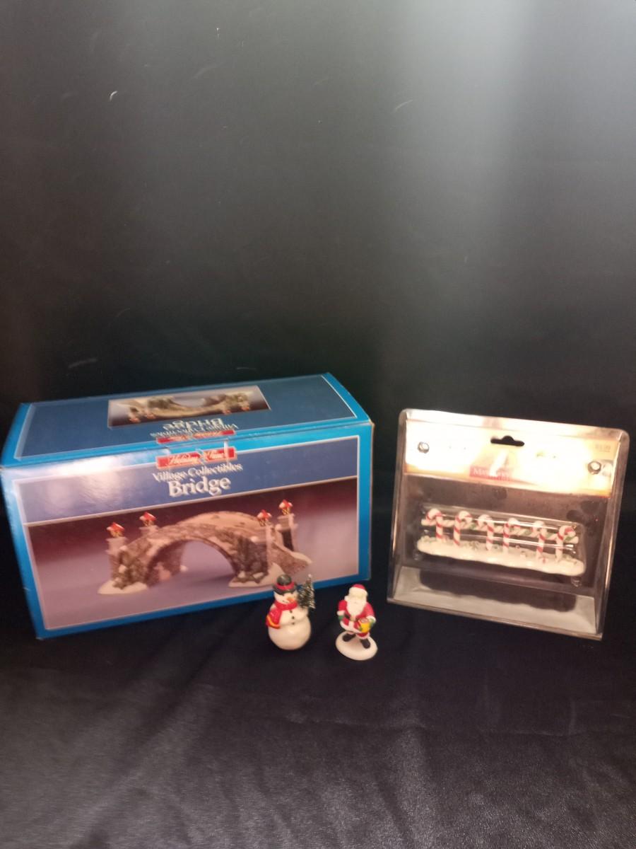 VILLAGE COLLECTIBLES BRIDGE CANDYCANE LANE AND SANTA & SNOWMAN FIGURES