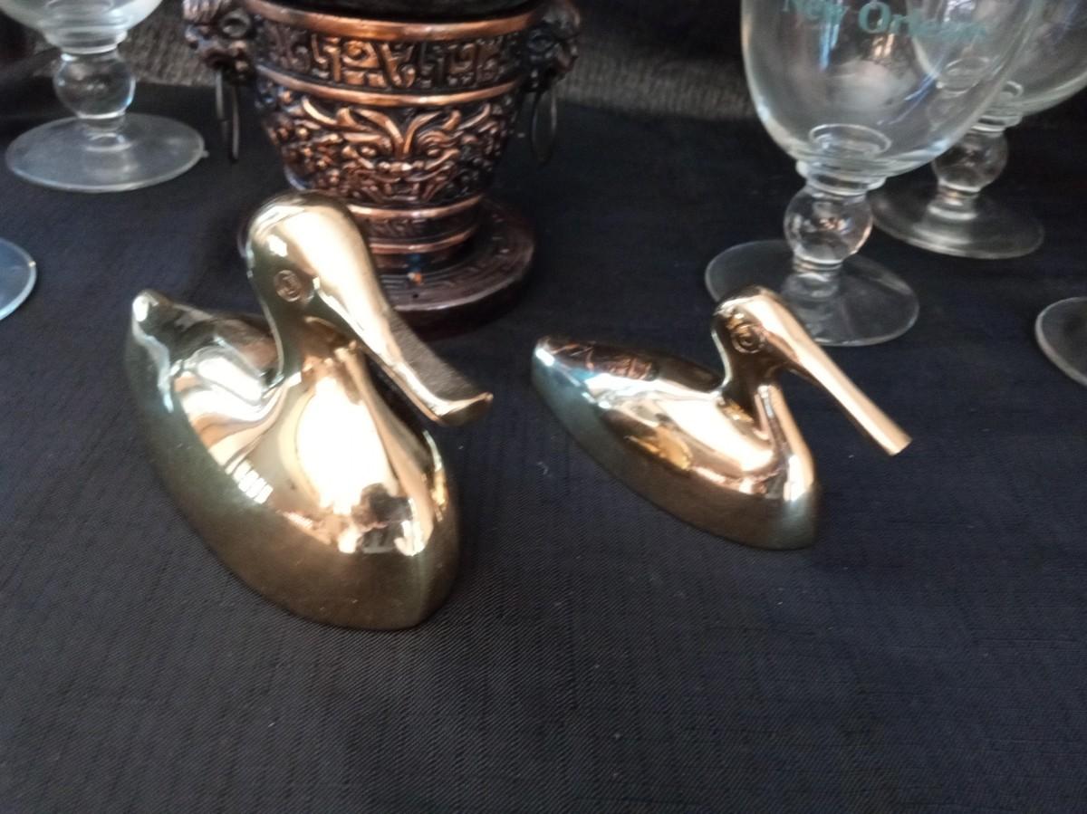 LOT 76 BRASS DUCKS, S'MORES MAKER AND 6 TALL GLASSES