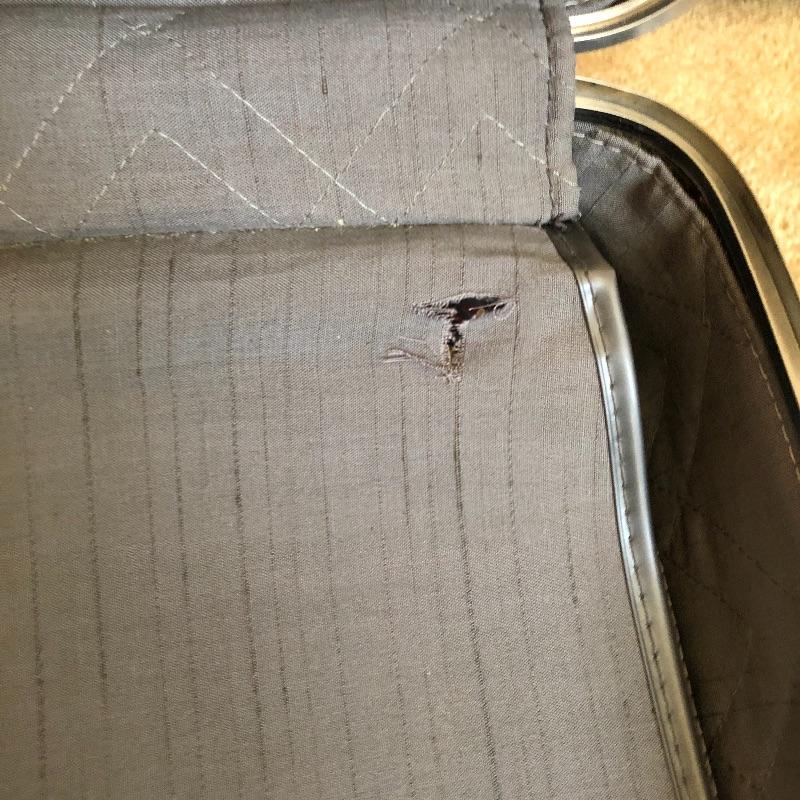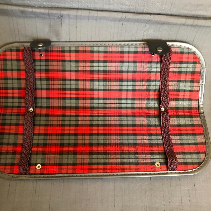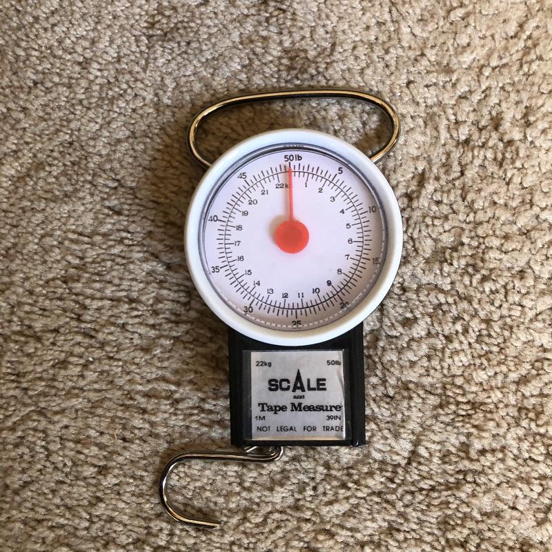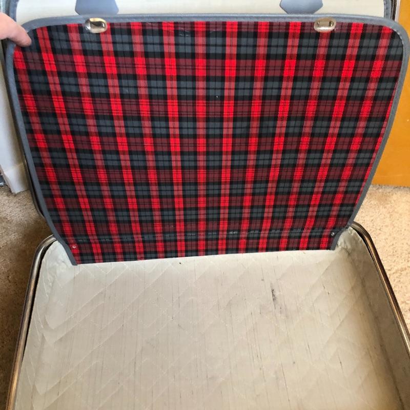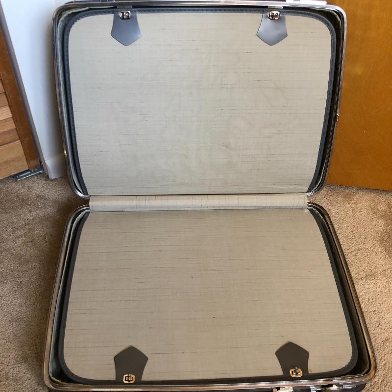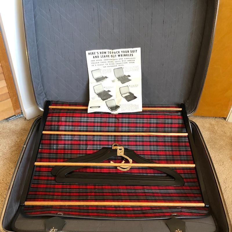 Look stylish with this vintage pair of American Tourister suitcases. Lot includes two matching American Tourister suitcases with keys and a scale. Largest suitcase has two small tears on separator inside case. Largest case measures 8” x 24” x 20”.