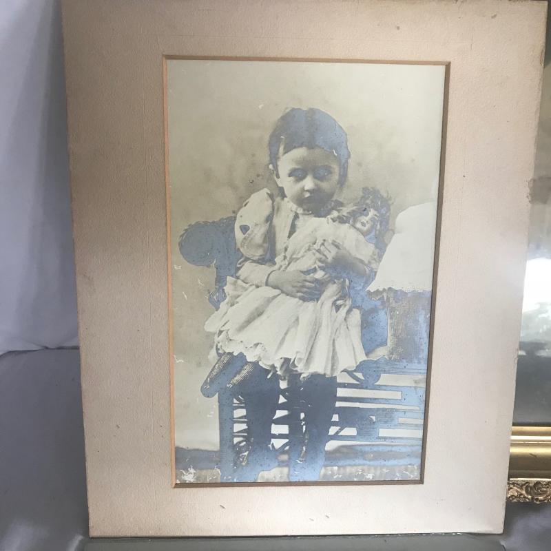 Largest gold frame measures 23” x 20” and is of a small child, frame has some chipped places. Two photos are not framed. Local pick up only.
