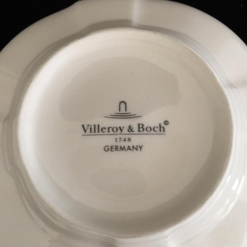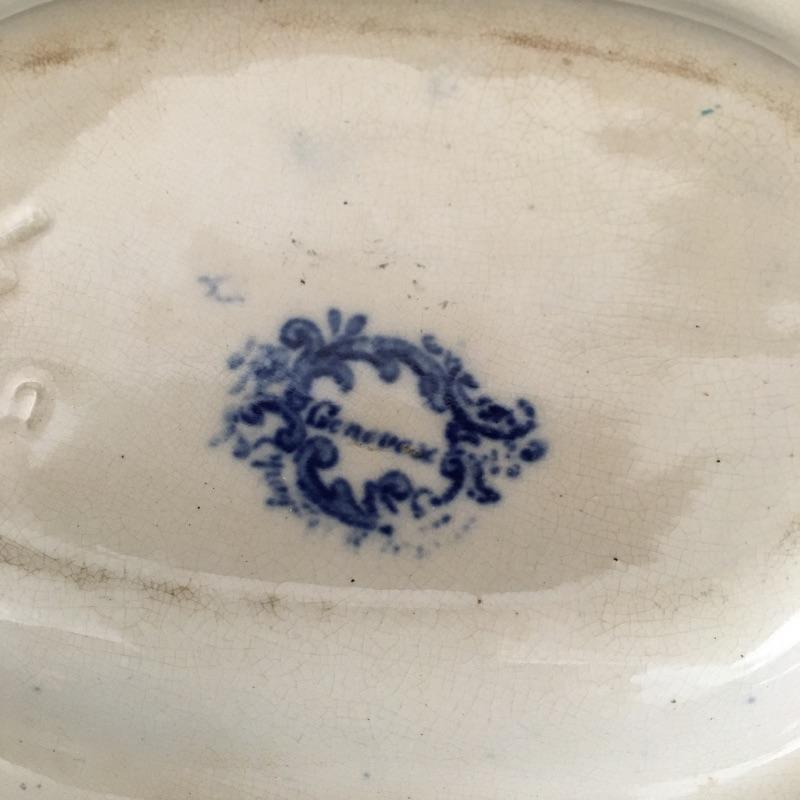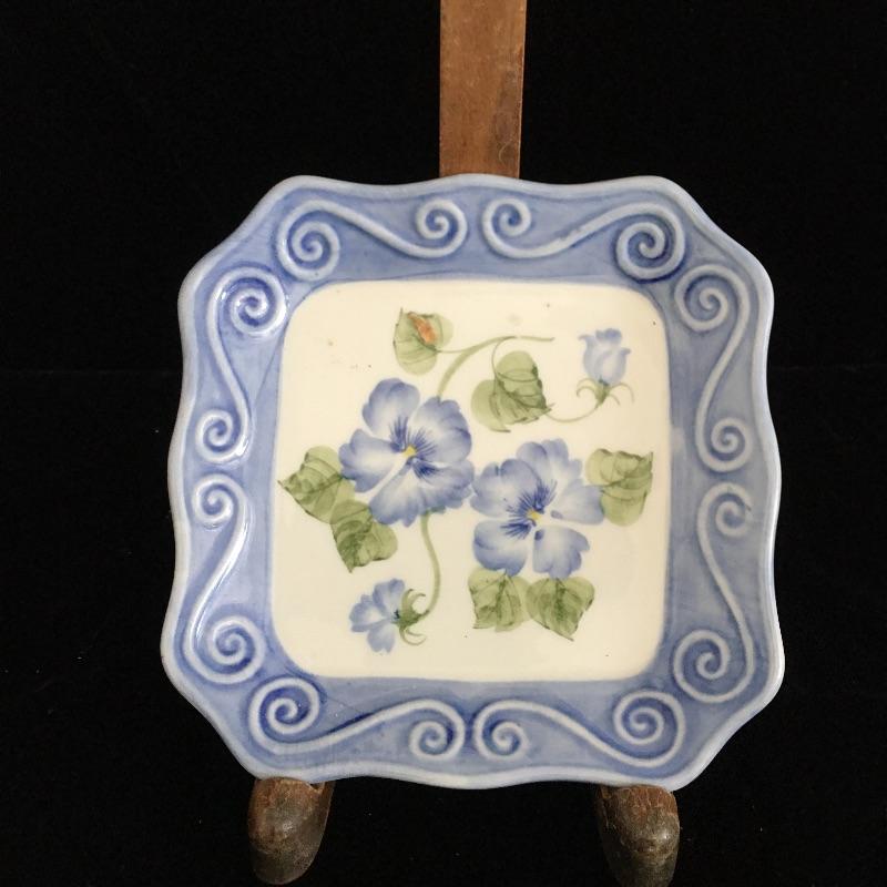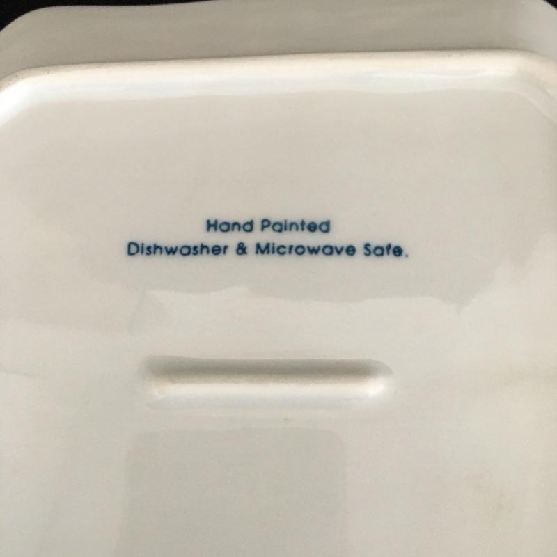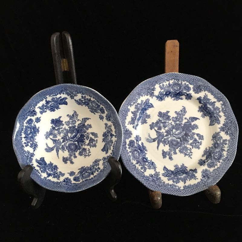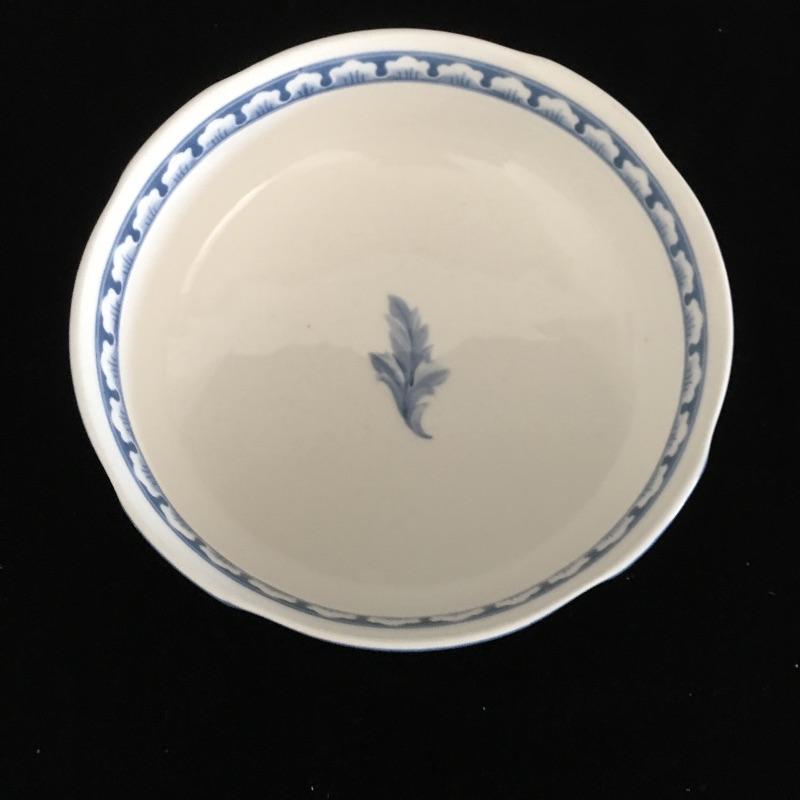 Blue and white dishware includes a pair of Cafe Paris plates, matching bowl and plate, matching cup, saucer and plate and a variety of blue and white dishes. Largest plate measures 10.25”.