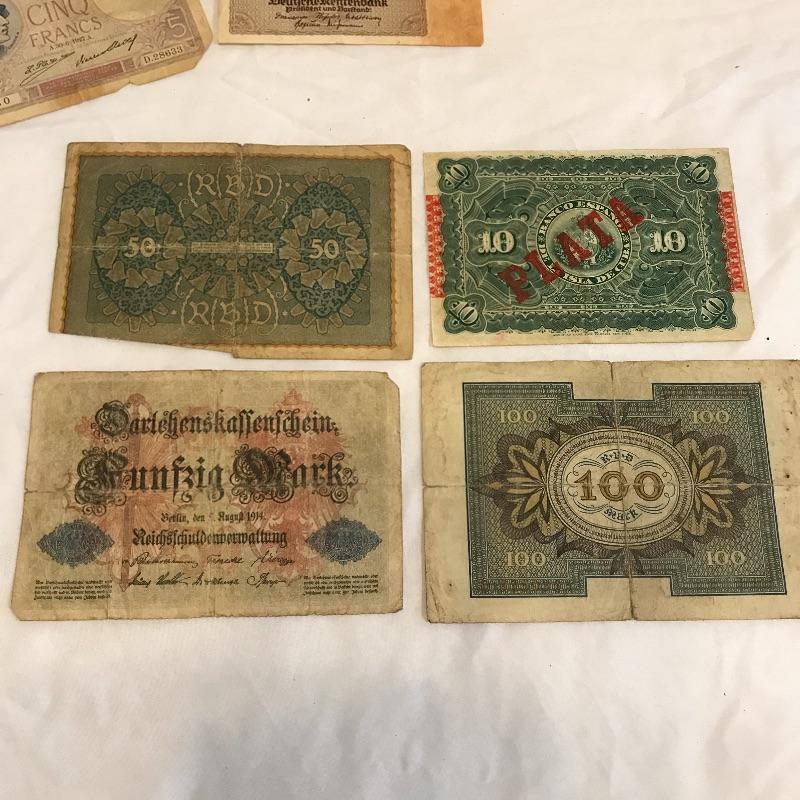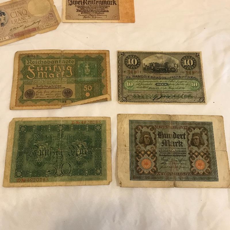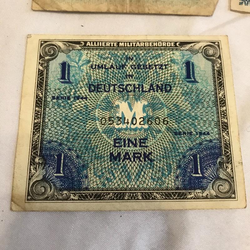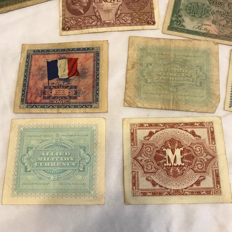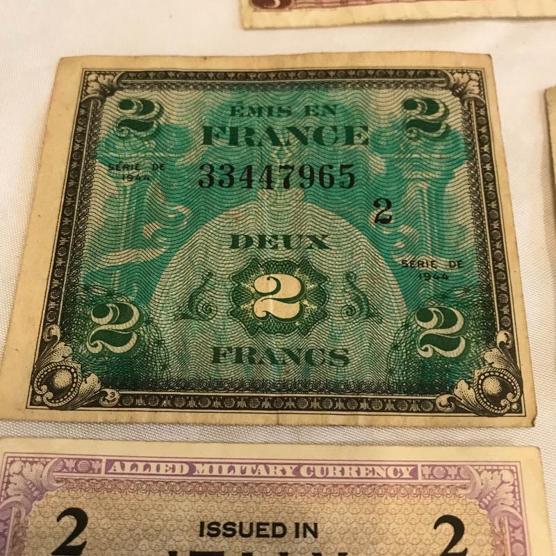 We have a fascinating collection of foreign notes full of history. Four notes appear to be military currency from Germany, Italy and France during WWII. These notes are in great condition for their age with some minor folding along the corners. Lot also features two 1944 5 Lire in varying conditions, a nice 1 Schilling from 1944 and six more notes of various condition from Europe and Cuba. See images. Shipping available. * Please note, there are no refunds or returns for items purchased at auction. Please be sure to review carefully prior to bidding. We can not verify or authenticate these notes.