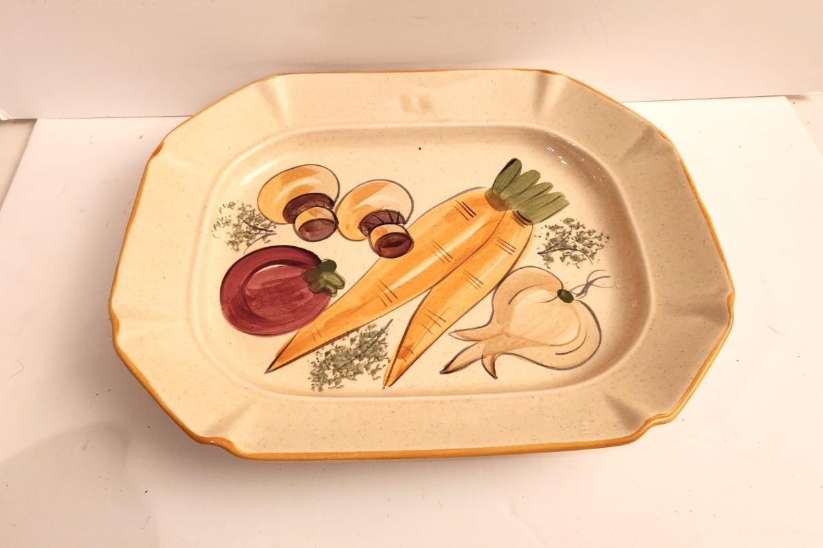 Mid Century Modern Design Craft of California - 1960's platter. 16" long, Features mushrooms and veggies. Good condition.