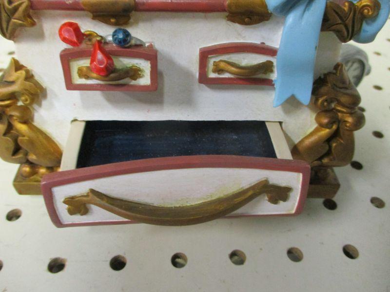 When the drawer is opened, the music box plays. Items were displayed in home and may need cleaning. Please review pictures for condition. For shipping please keep in mind that you will pay for the item first and then we will take the item to the local UPS store for shipping. Please bid accordingly.