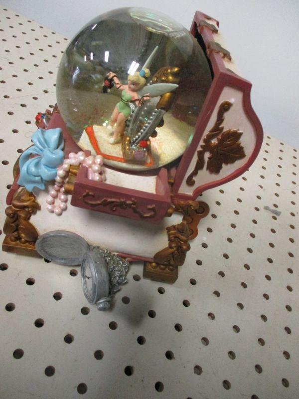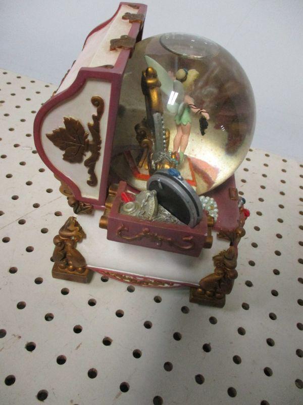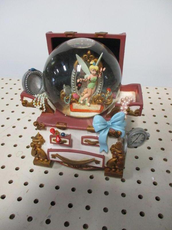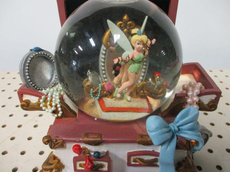 Lot 76 - Disneys Tinker Bell Hidden Treasure Chest Snow Globe w/ Musical Jewelry Box