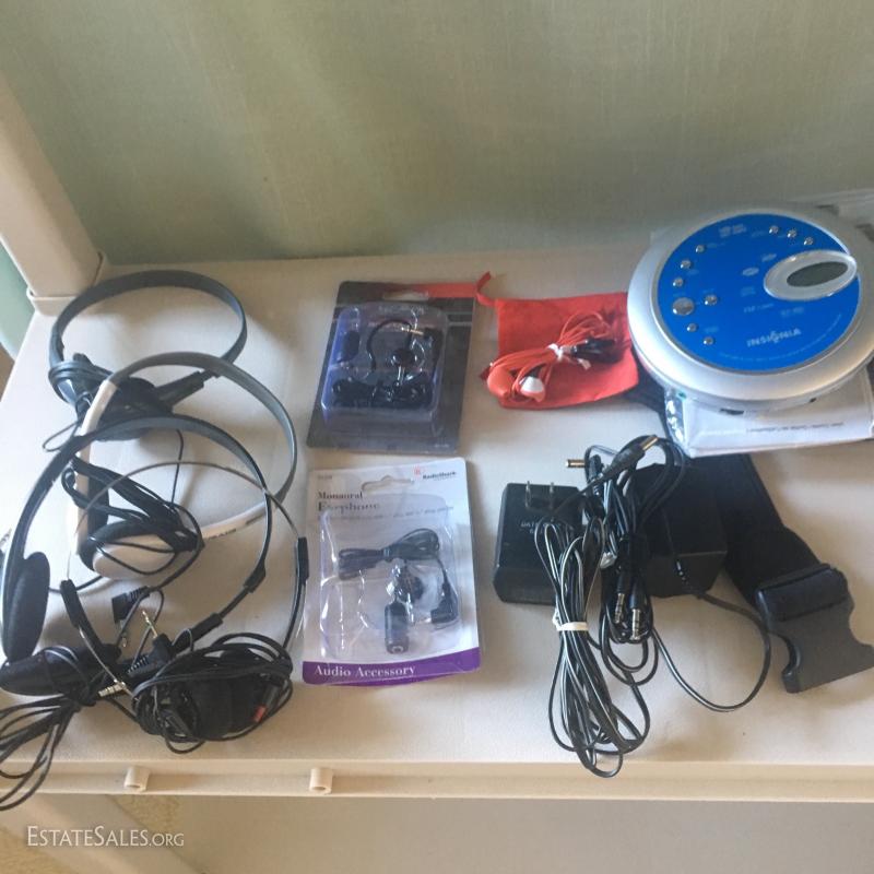 Includes Sony headphones, Insignia CD player & Caselogic belt case,