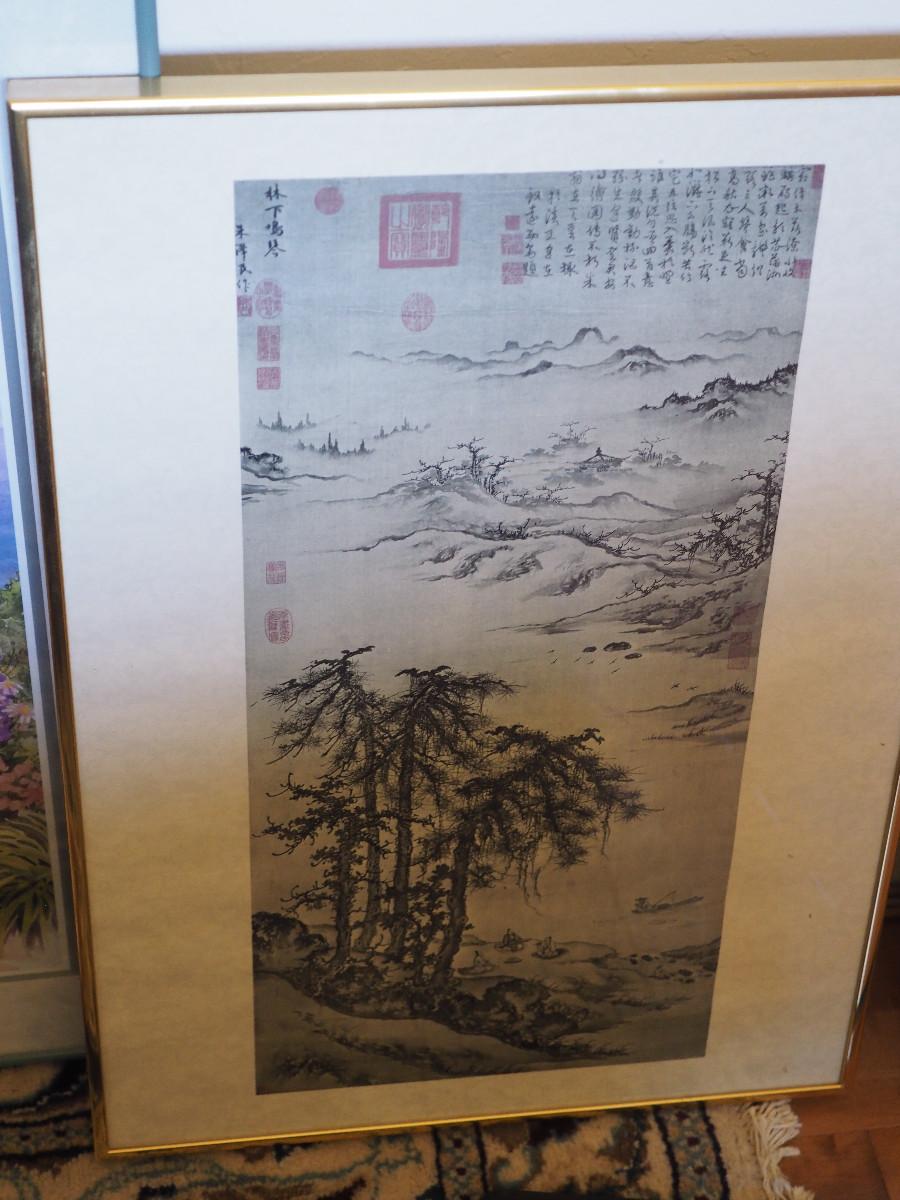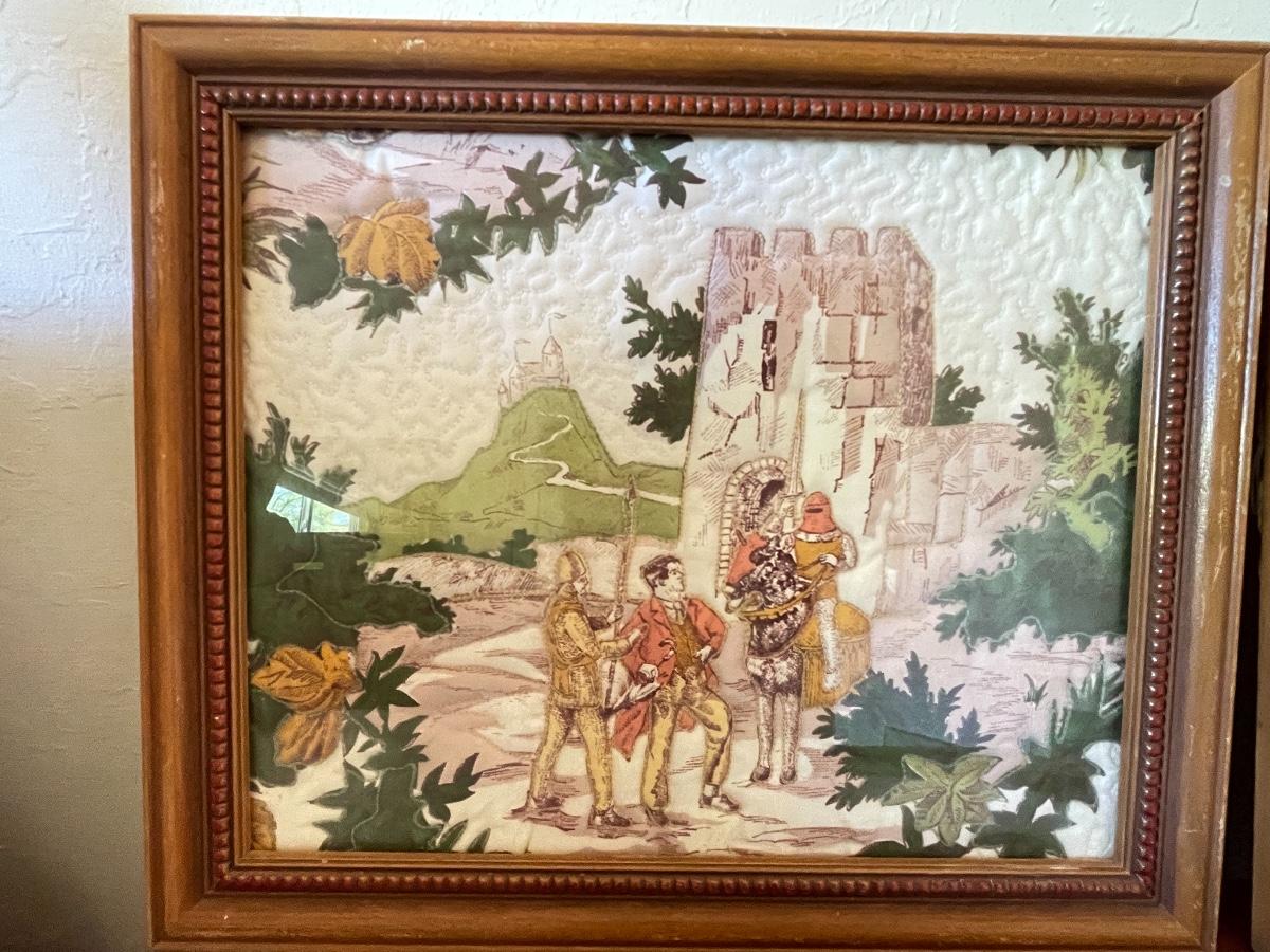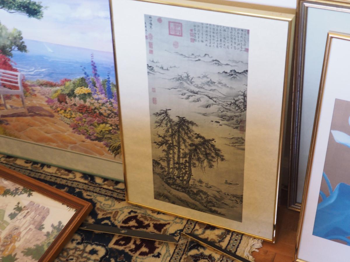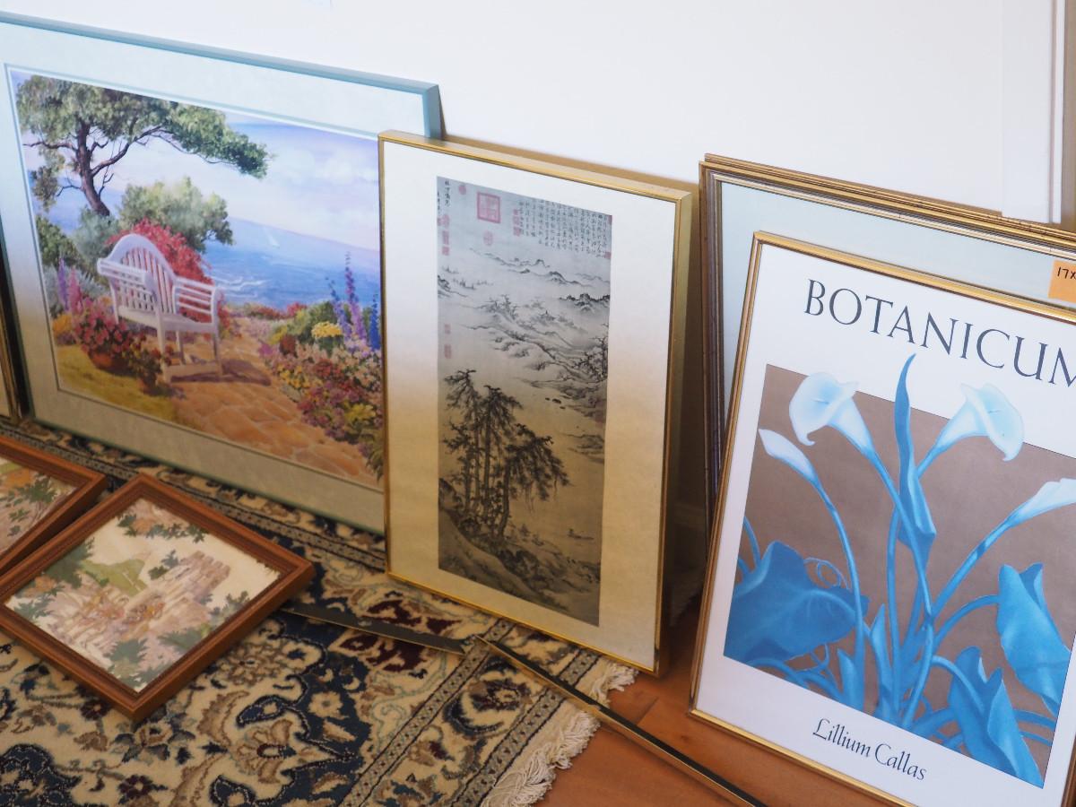 Framed prints, posters, vintage scenes as shown. Set of 3 vintage scenes with matching frames are 13x11". Larger Art are 22x28” & 28x22”. One art, frame is damaged.