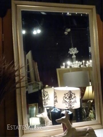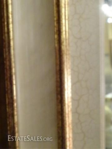 LOT 76: HUGE WOOD FRAME MIRROR, ANTIQUED WHITE AND GOLD CRACKLE FINISH, 68" X 50", SKU101