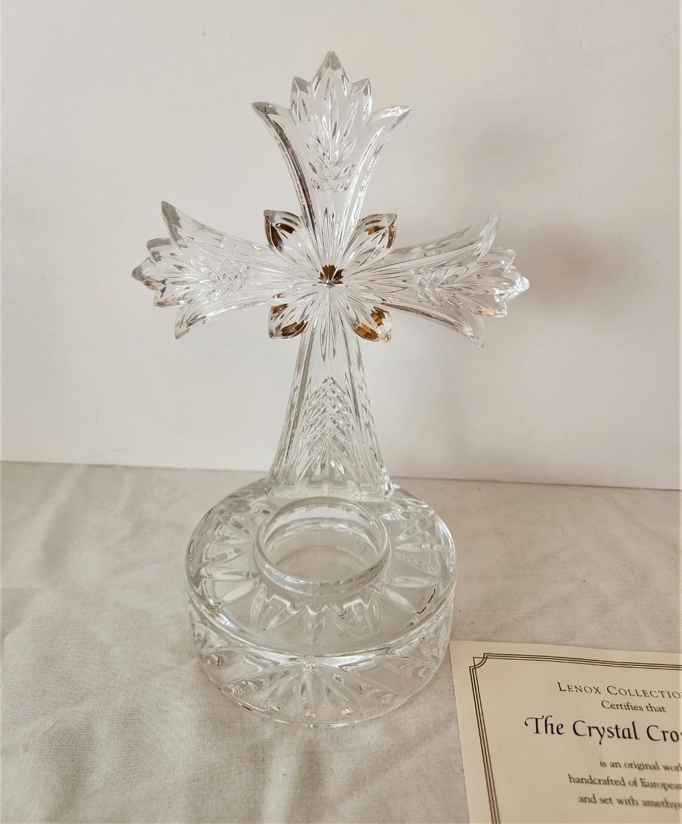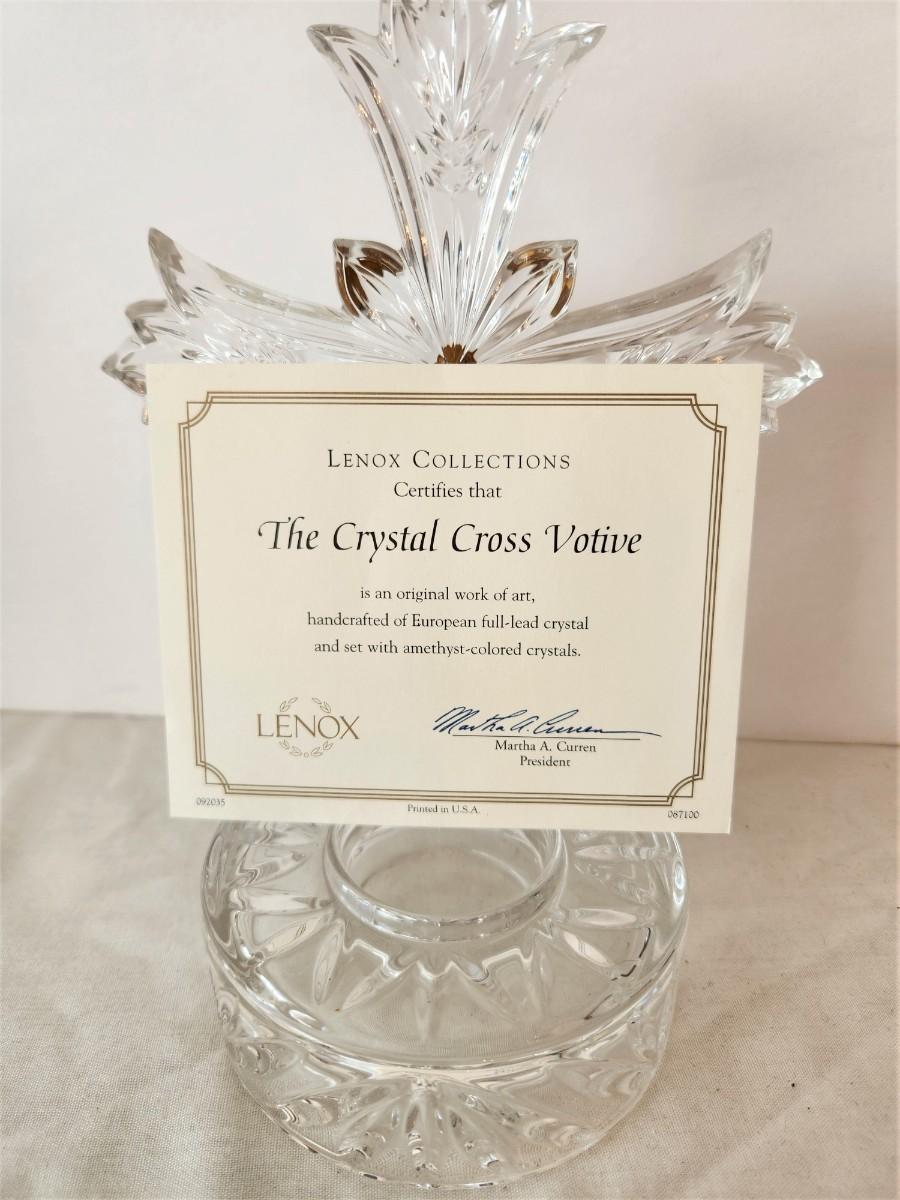 LENOX crystal cross votive candle holder - no box - has certificate. Pretty, great condition. 8" tall.