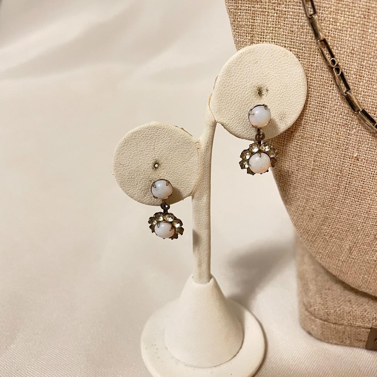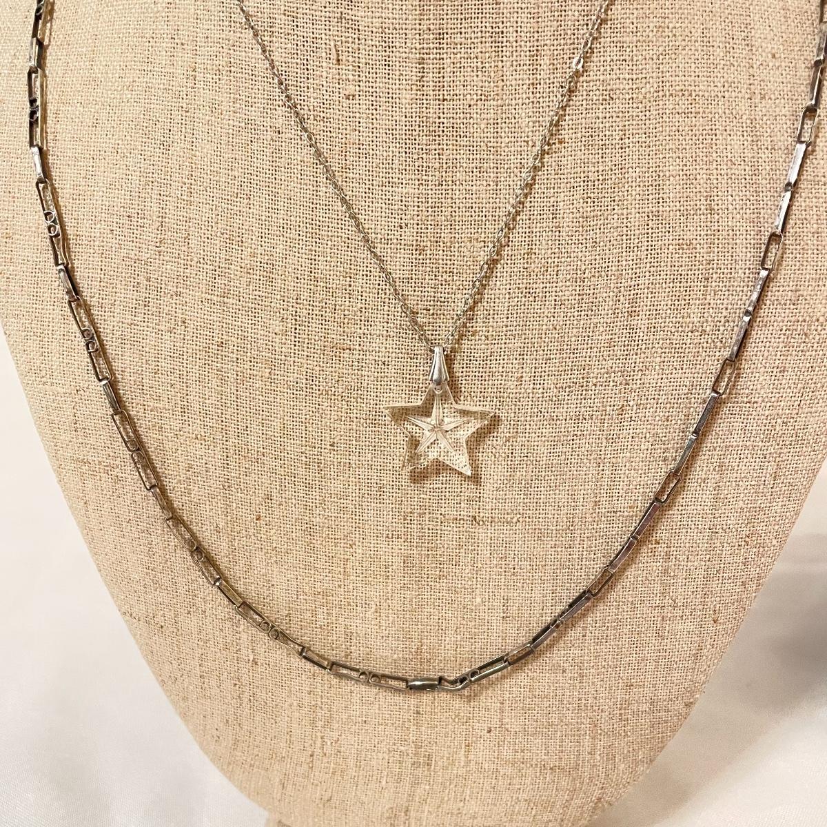A sweet and simple, yet elegant way to upgrade your look. Lot offers a leaf pin with what appears to be a partial local jeweler Stuart Nye stamp. Lot also features two chain necklaces, grape, spoon brooches and a lovely pair of opal like dangle clip earrings. All pieces except start pendant are either marked 925 or Sterling. See images. Shipping available.