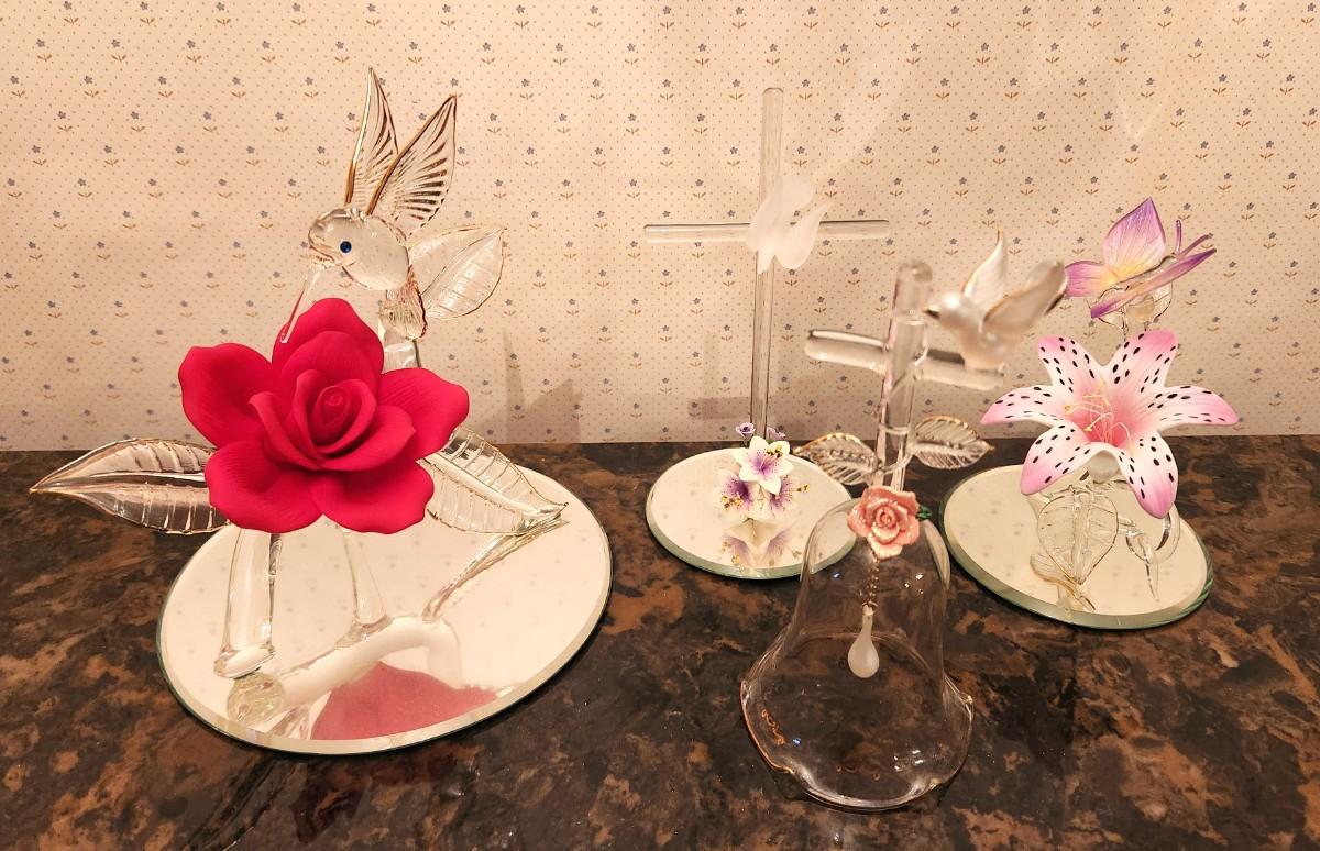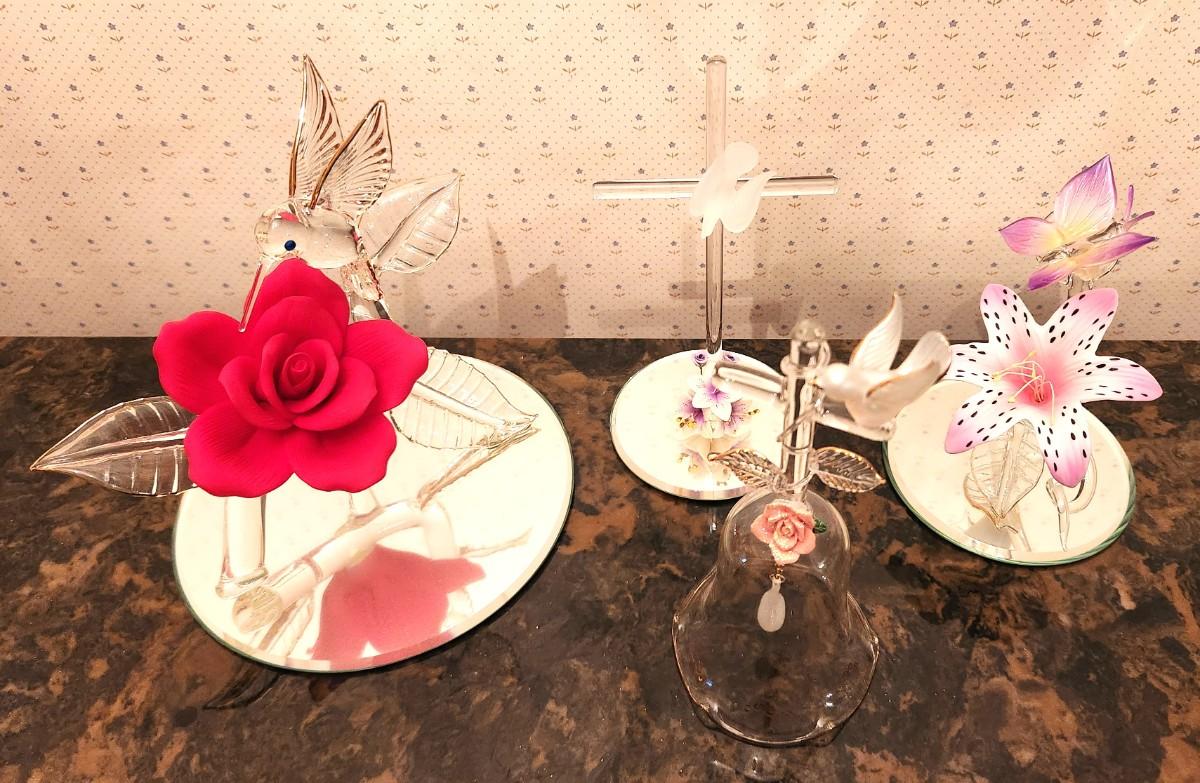 Lot #76 Lot of 4 Crystal Figurines on Mirrored bases - one bell
