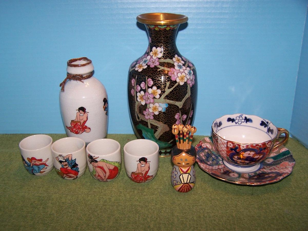 LOT 76 LOVELY VINTAGE ASIAN COLLECTIBLES CLOISONNE SAKE SET