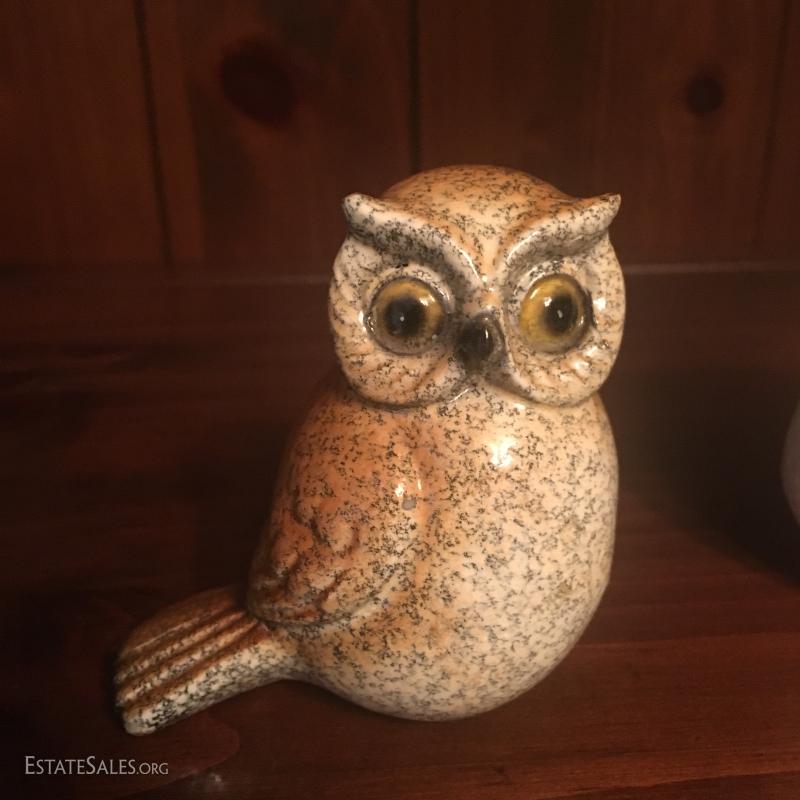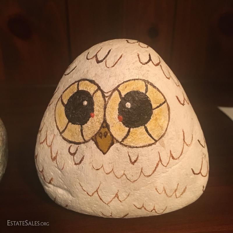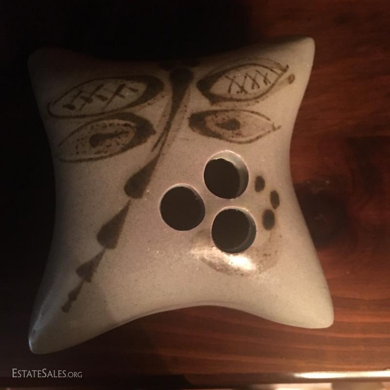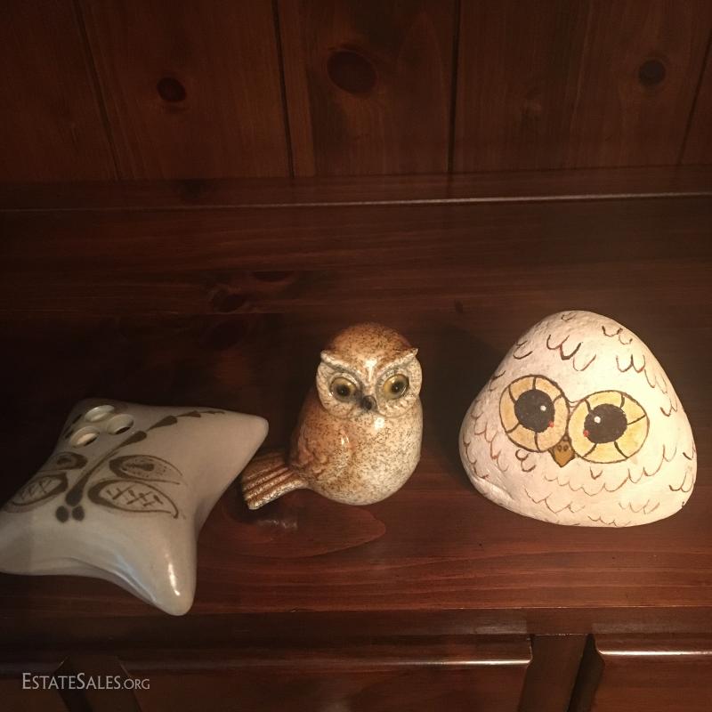 White owl is a painted stone by Close and stands 3.5" tall. Pillow pot is great for dried flowers and is made by local Asheville Artist Davis. This lot is avaiable for shipping or local pick up in Asheville, NC.