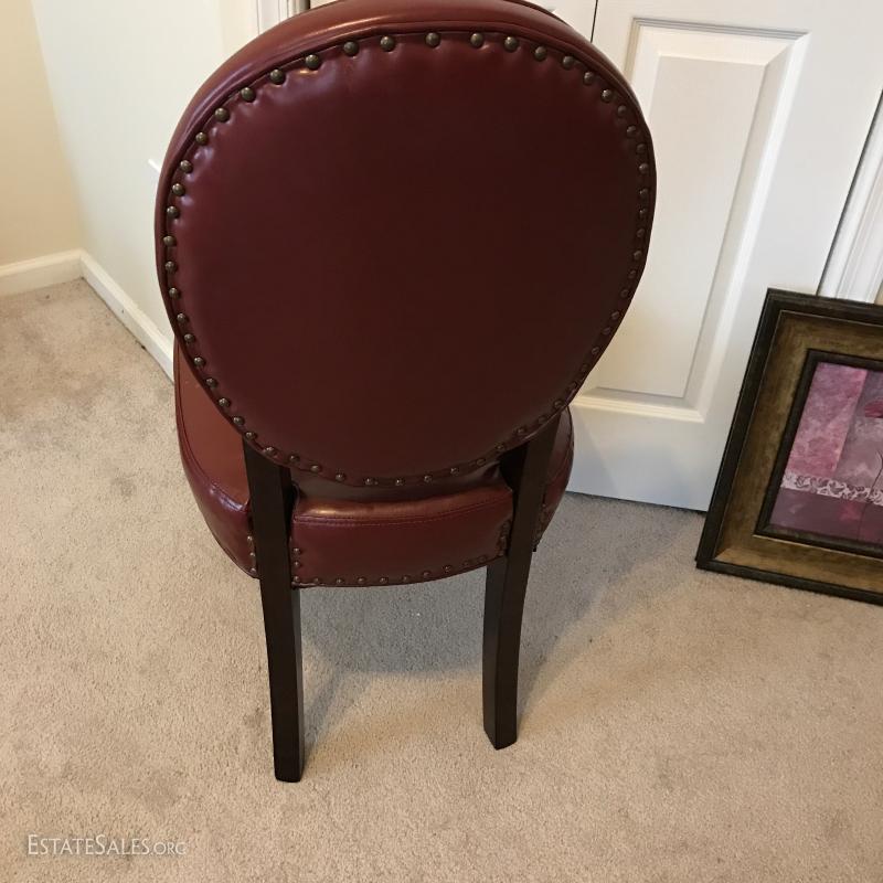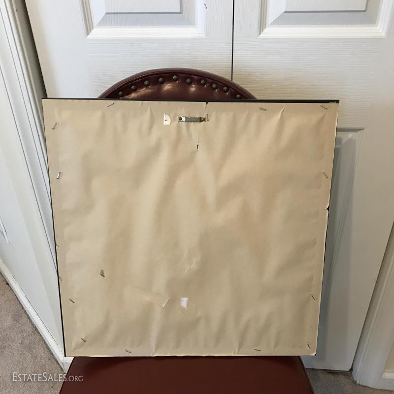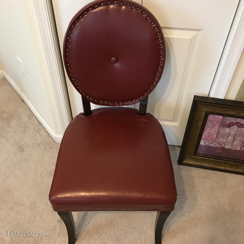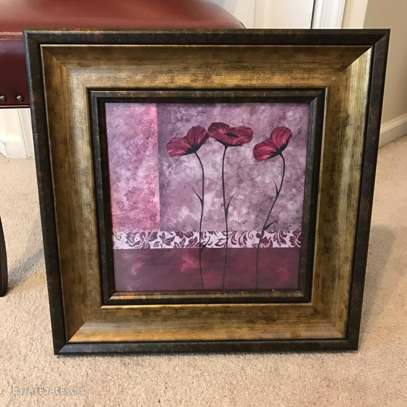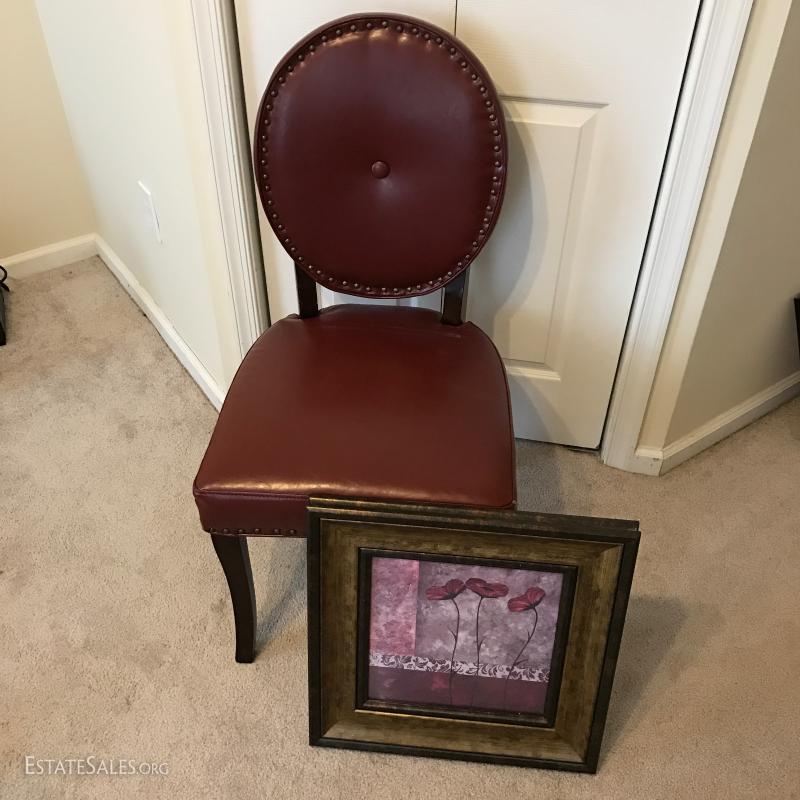 Faux leather desk chair and floral print. Print measures 18.5" x 18.5". This lot is available for local pick up in Mills River, NC only.