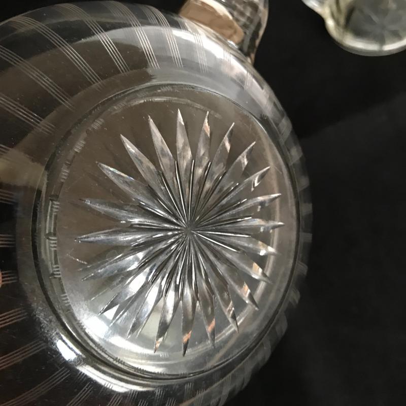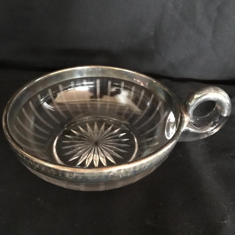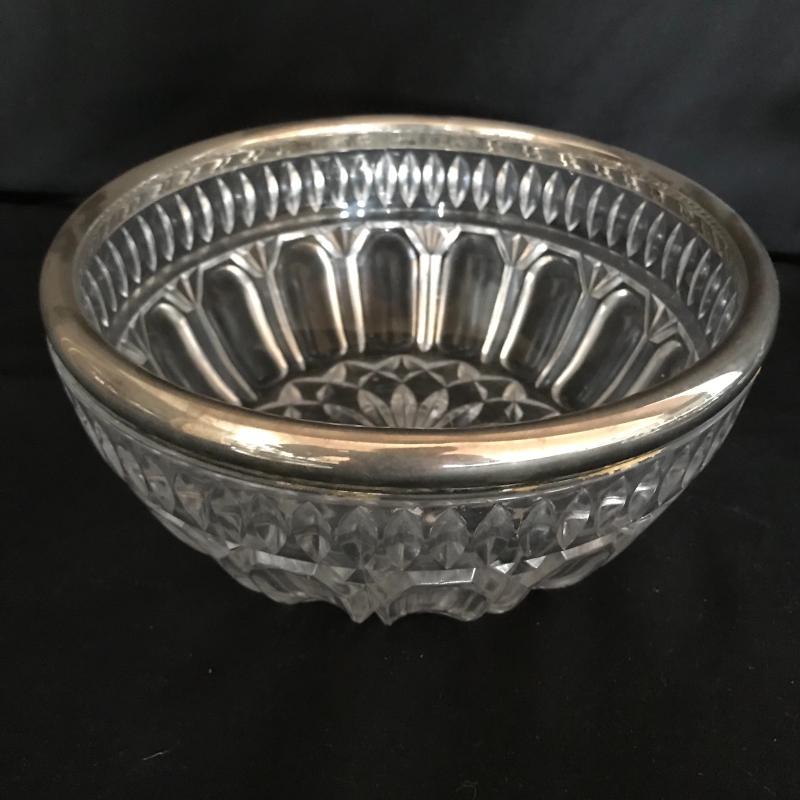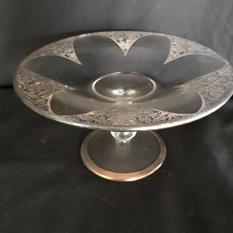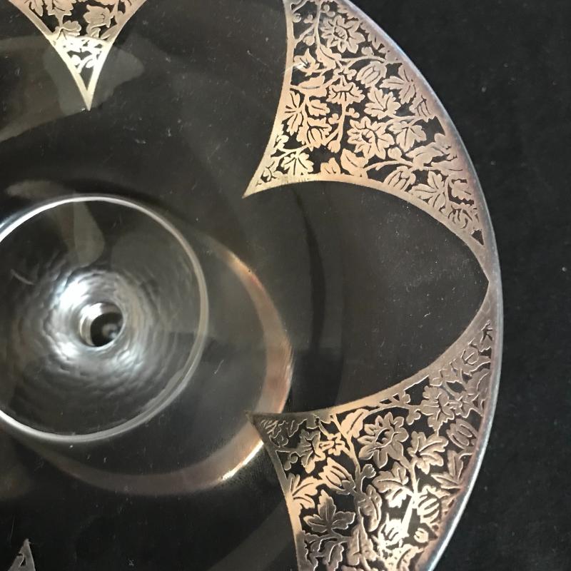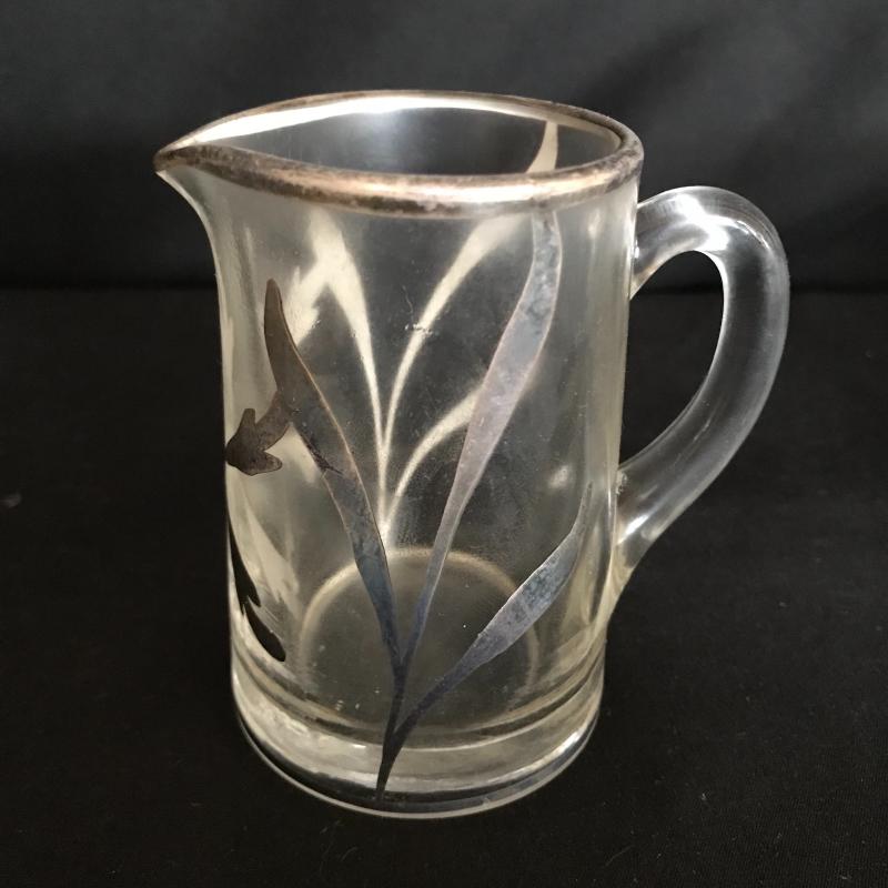 Lot includes ten pieces of crystal/glassware with silver overlay in various patterns. Small glasses have swallows on them and read “tiny swallow.” Local pickup only.