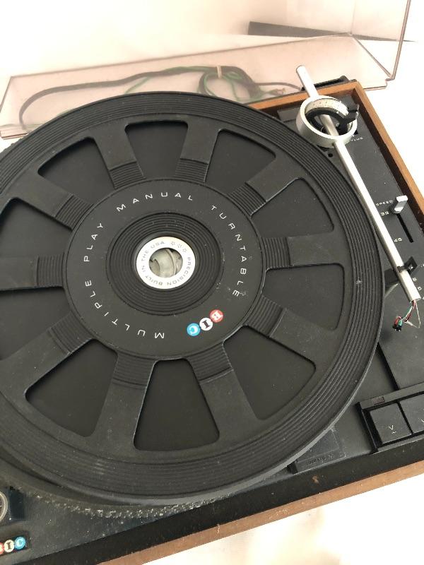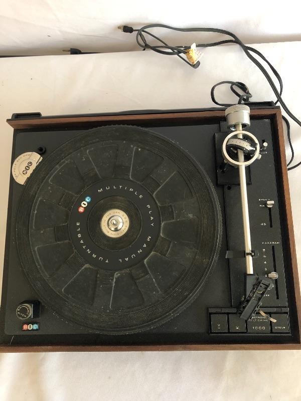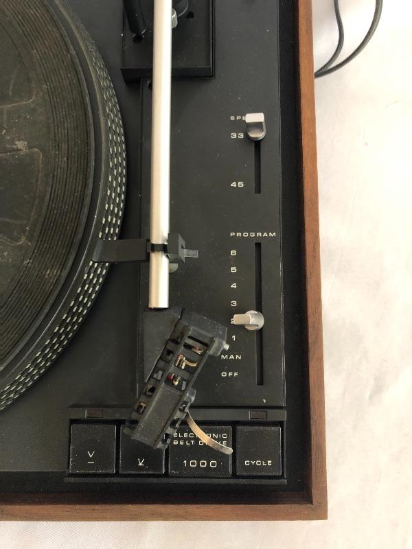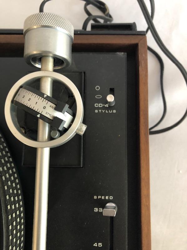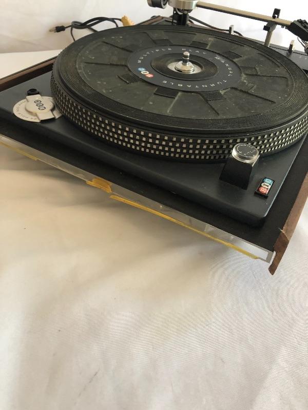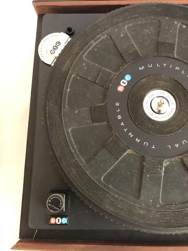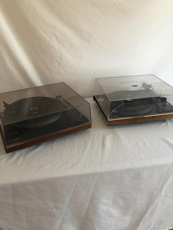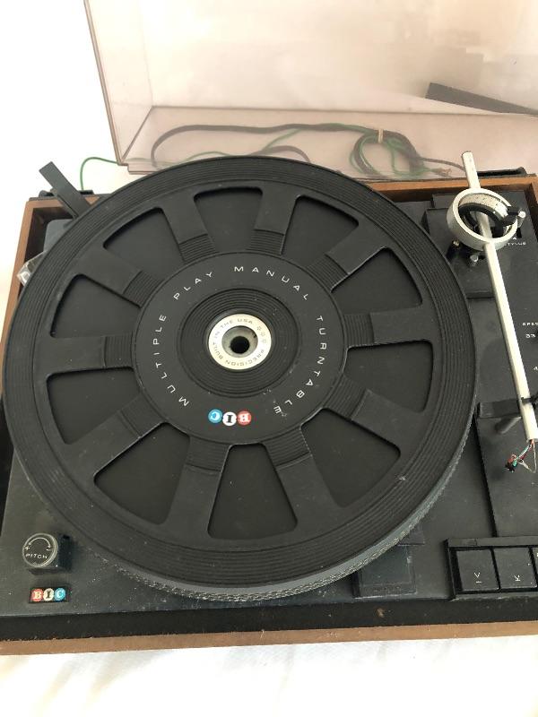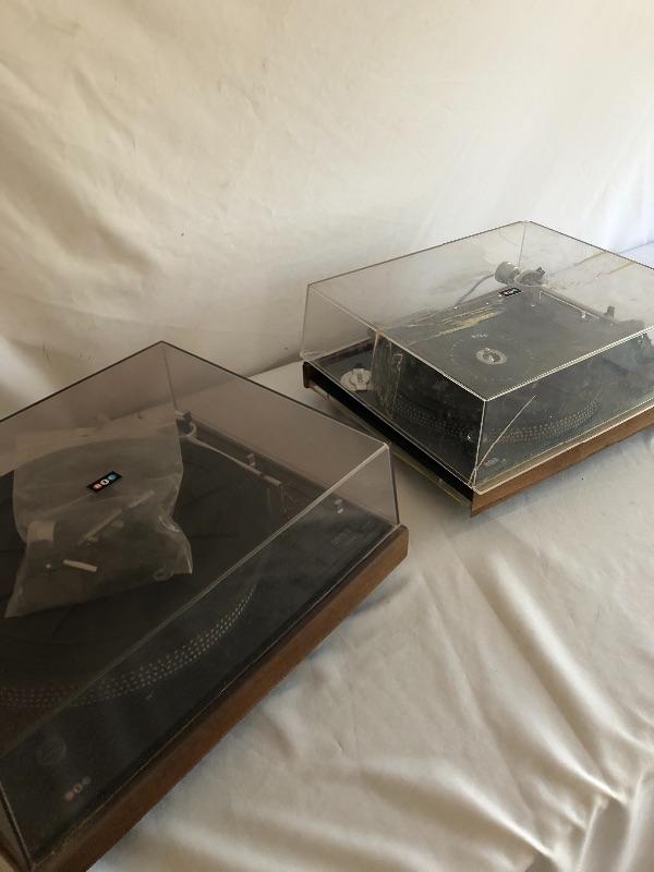 This lot includes two BIC electronic belt drive turntables. They both feature CD-4 stylus’. One lite up when plugged in however neither turntable moved. The other one did not have a plug.