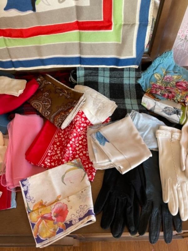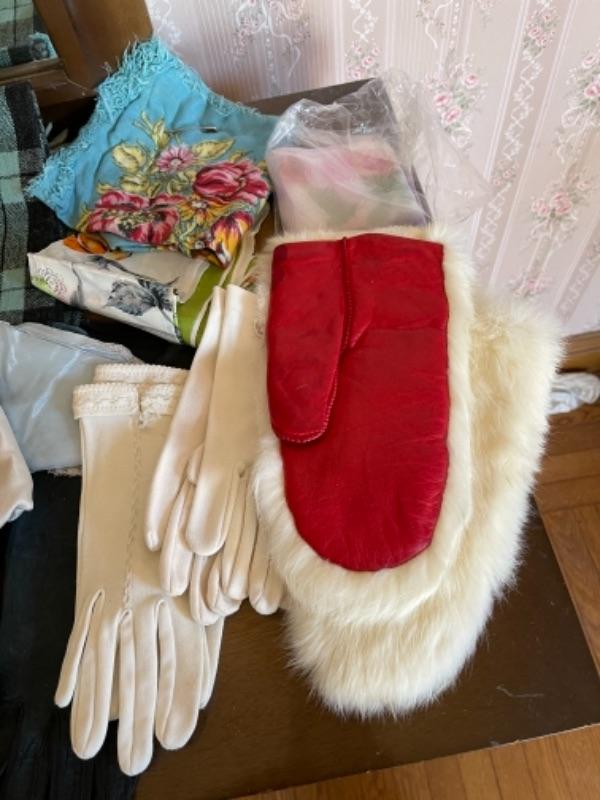 Lot 76. Vintage scarves, nylons, gloves and mittens--$75
