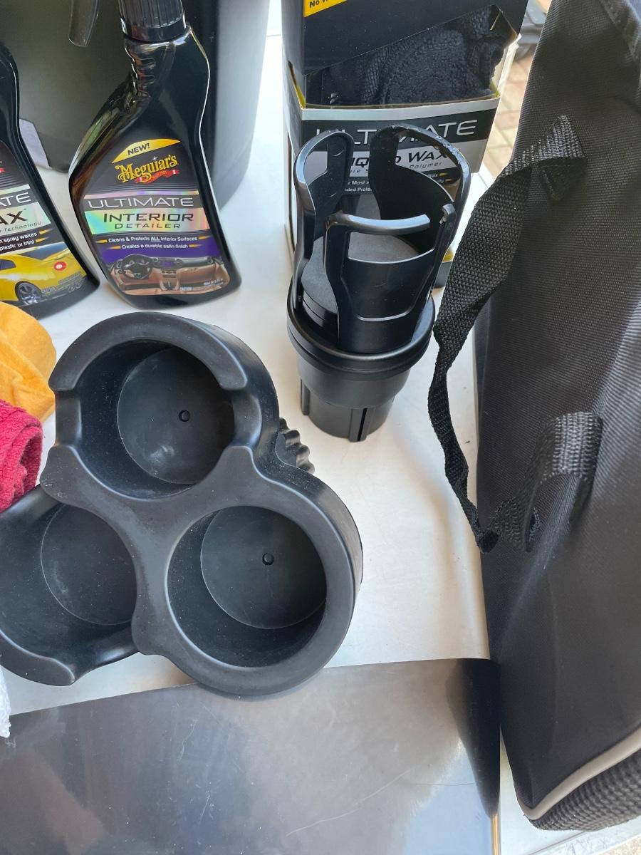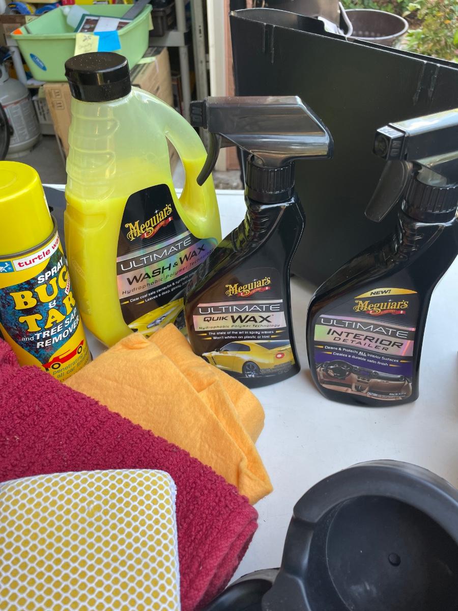 cupholders, waxing products, wastebasket, truck organizers, bug & tar remover, car washing liquid, rags, ShamWow,