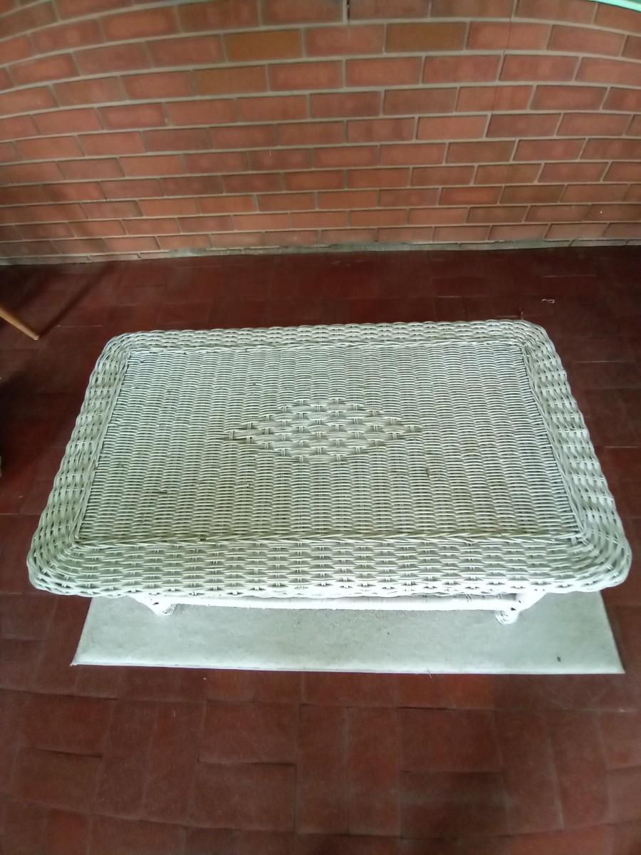 LOT 73 WHITE WICKER COFFEE TABLE AND BASKET