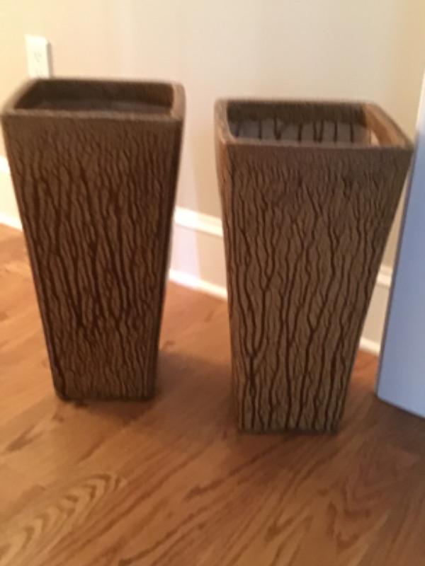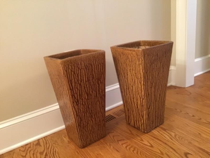 A PAIR OF PLANTERS MEASURING 19 1/2” T X 10” X 10” @ TOP