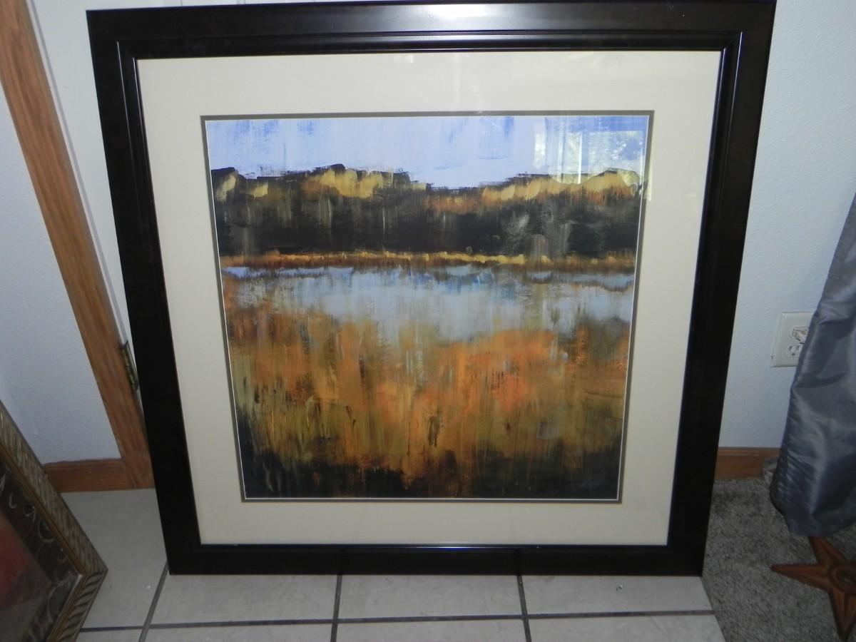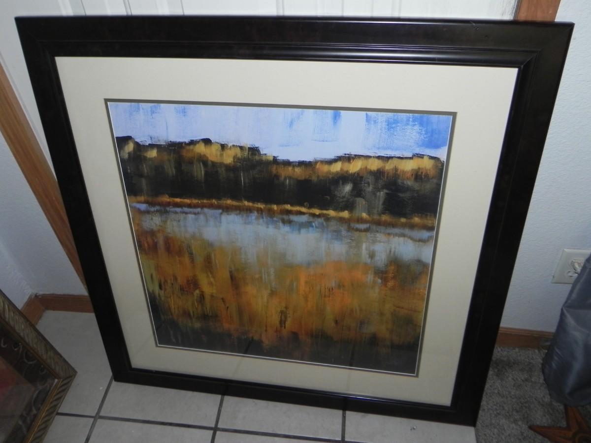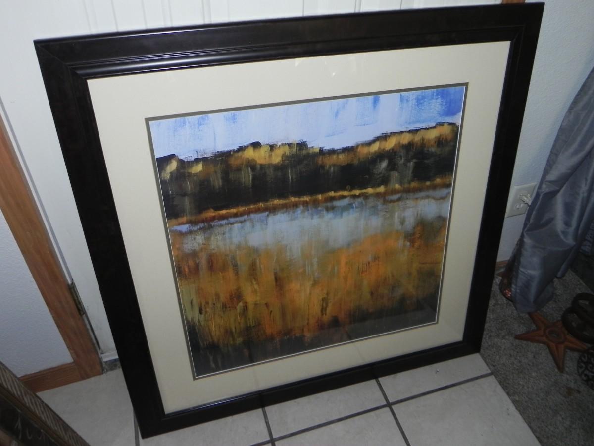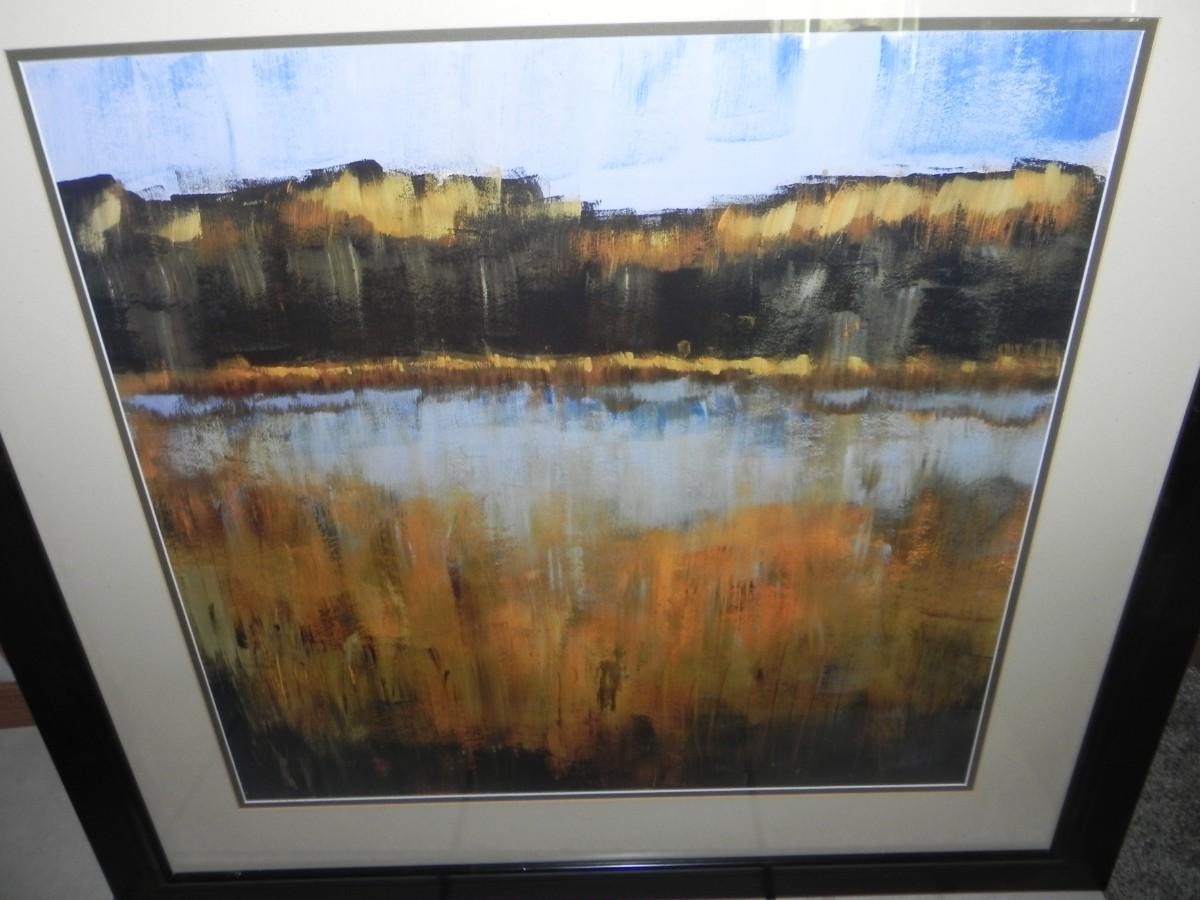 LARGE FRAMED ABSTRACT "SALT WATER MARSH" ARTWORK