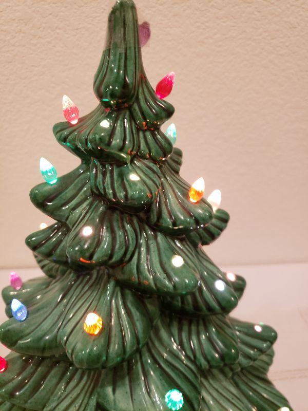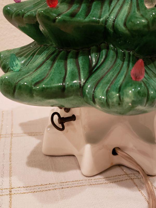 Lot 765: Vintage Atlantic Mold Ceramic Music Box Christmas Tree (Lights & Music Both Work--Missing Some Bulbs)