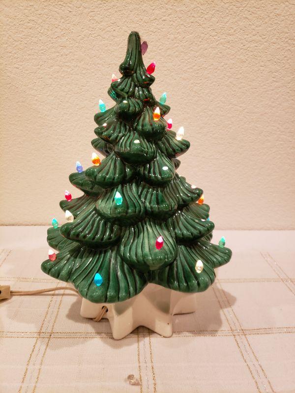 Lot 765:  Vintage Atlantic Mold Ceramic Music Box Christmas Tree (Lights & Music Both Work--Missing Some Bulbs)