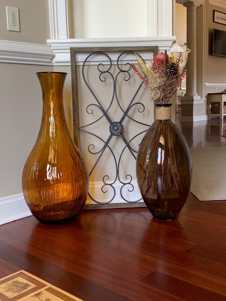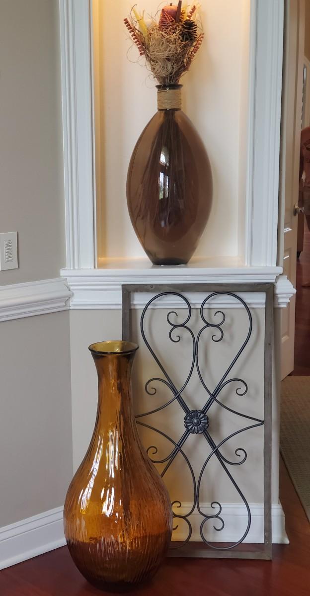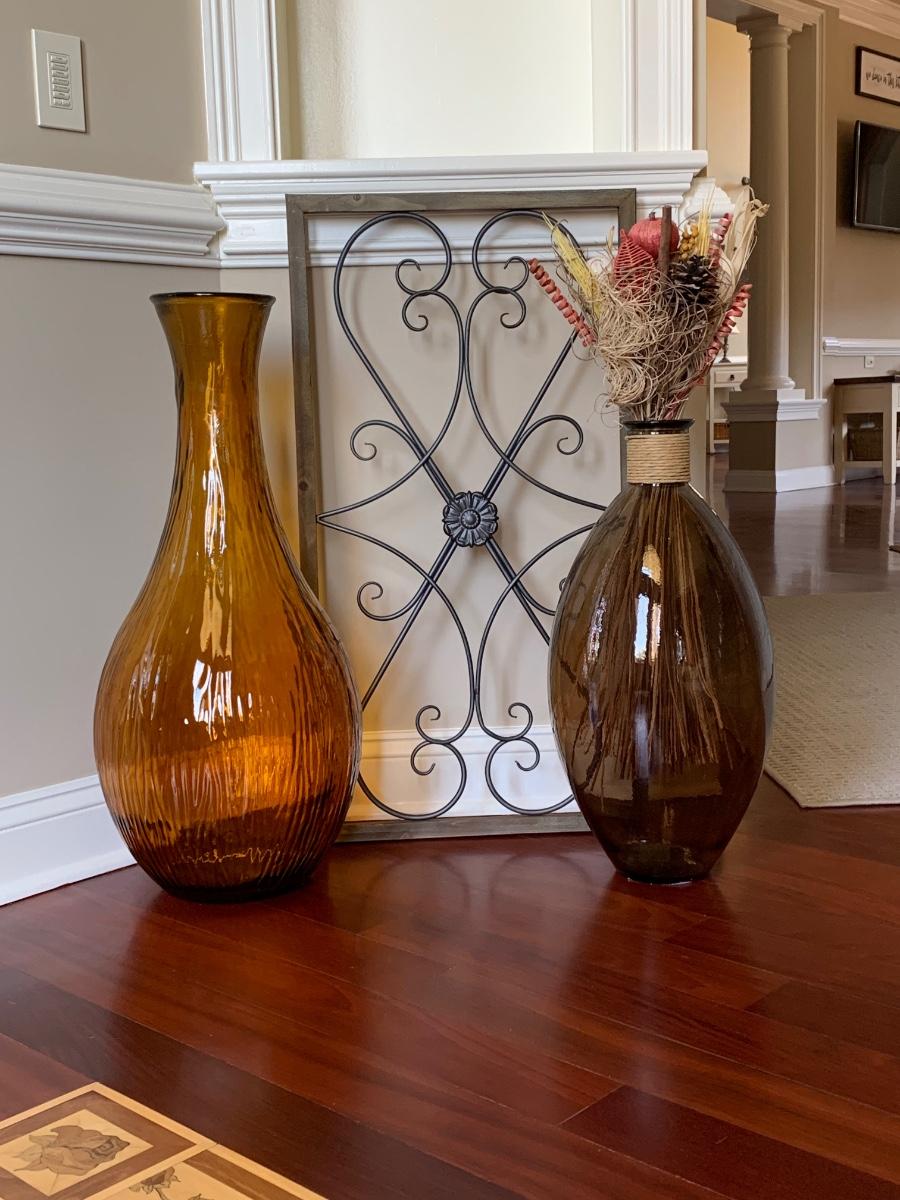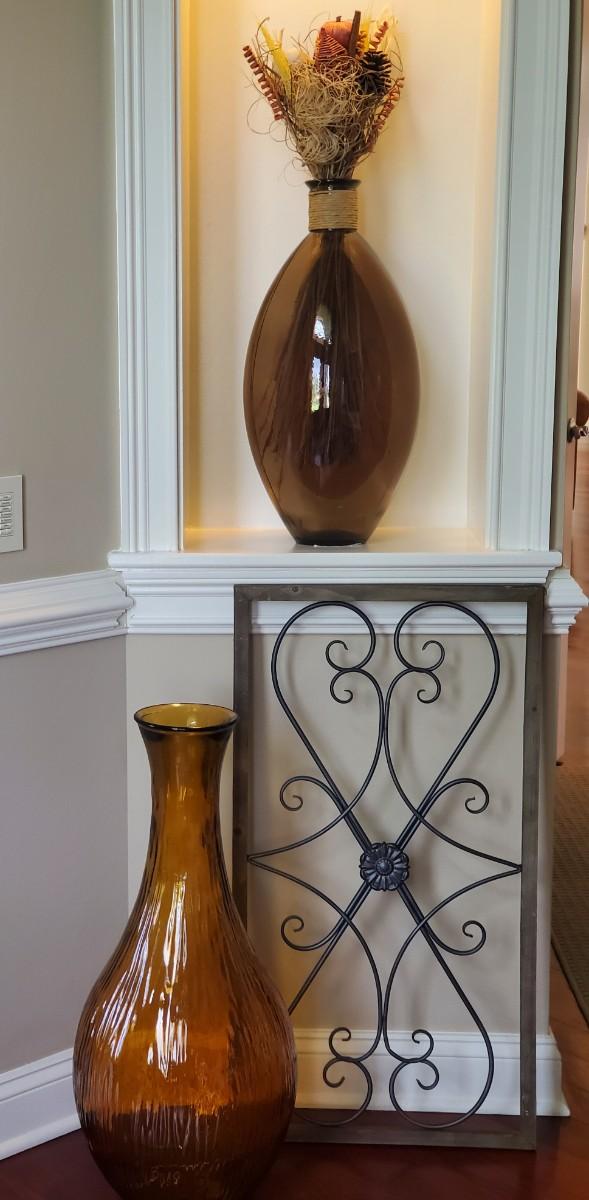 LOT 5G: Oversized Brown & Orange Glass Vases & Wall Decor