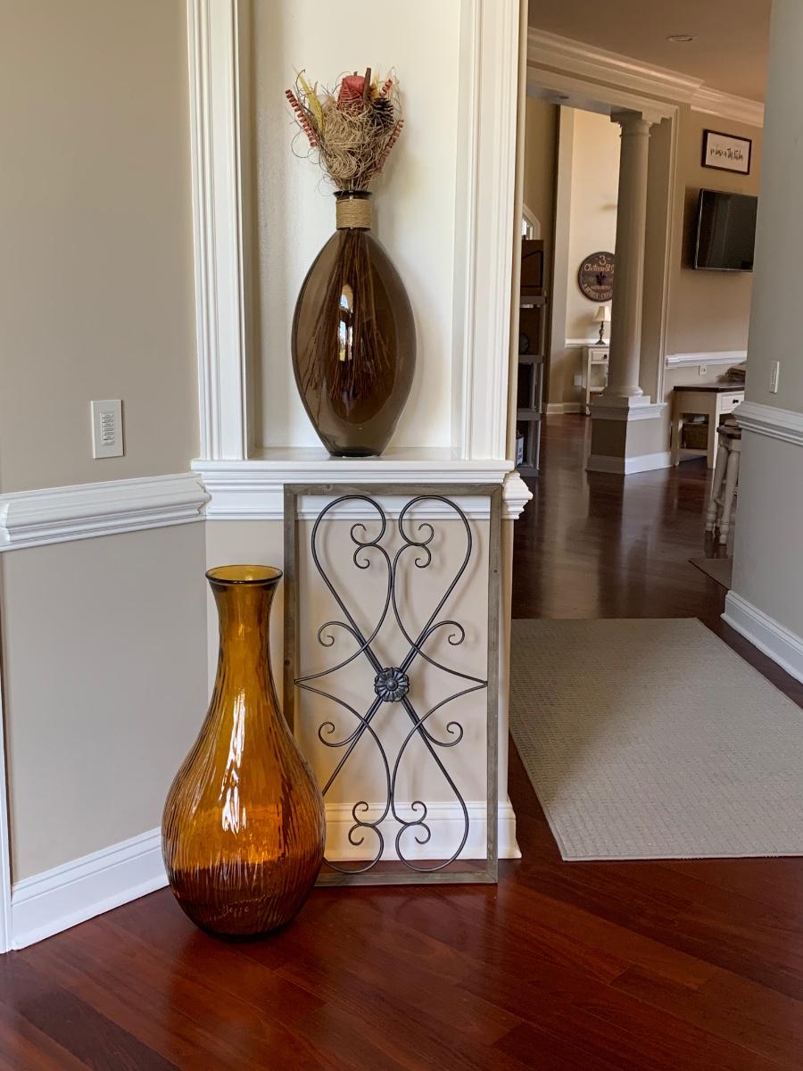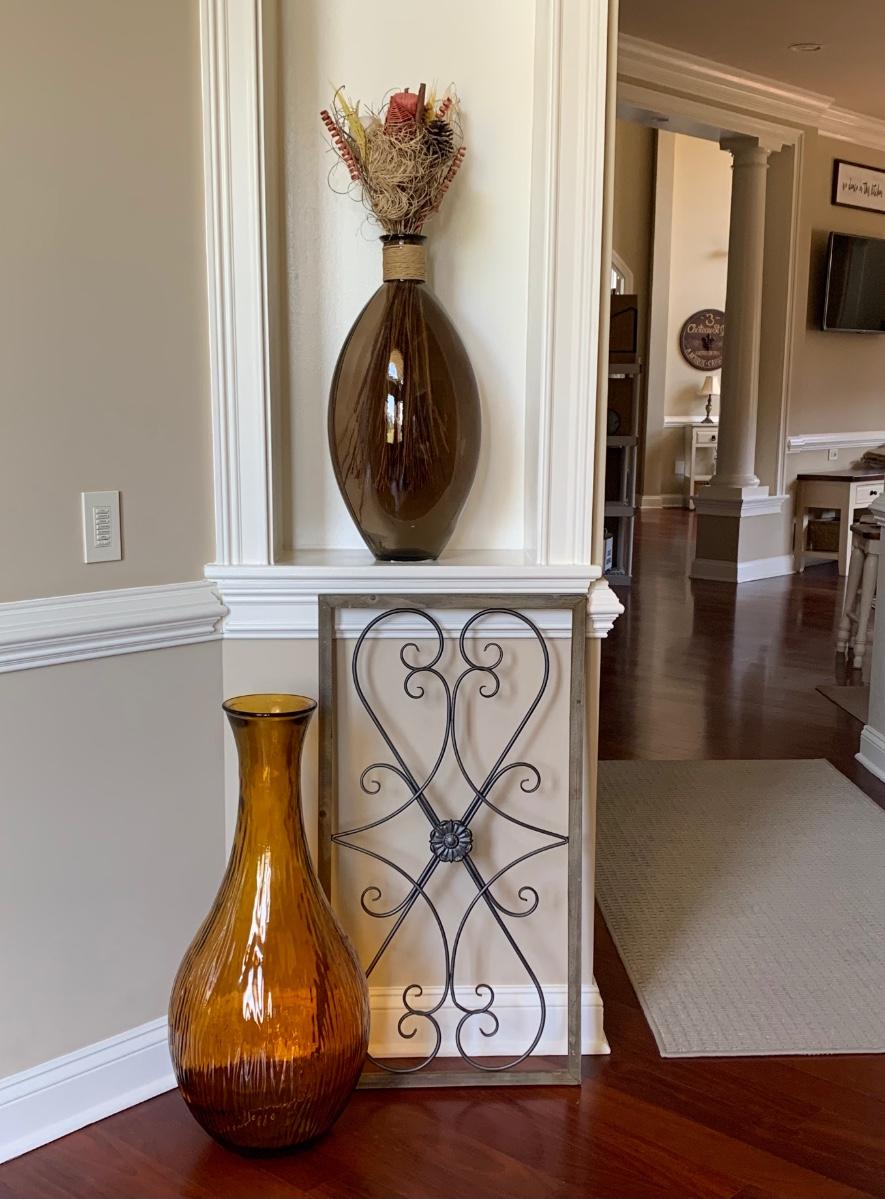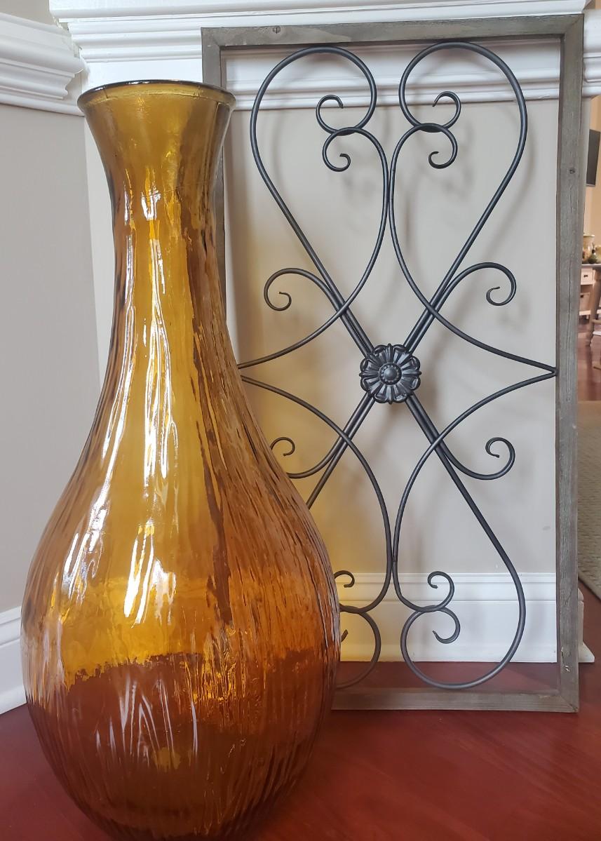 LOT 5G: Oversized Brown & Orange Glass Vases & Wall Decor