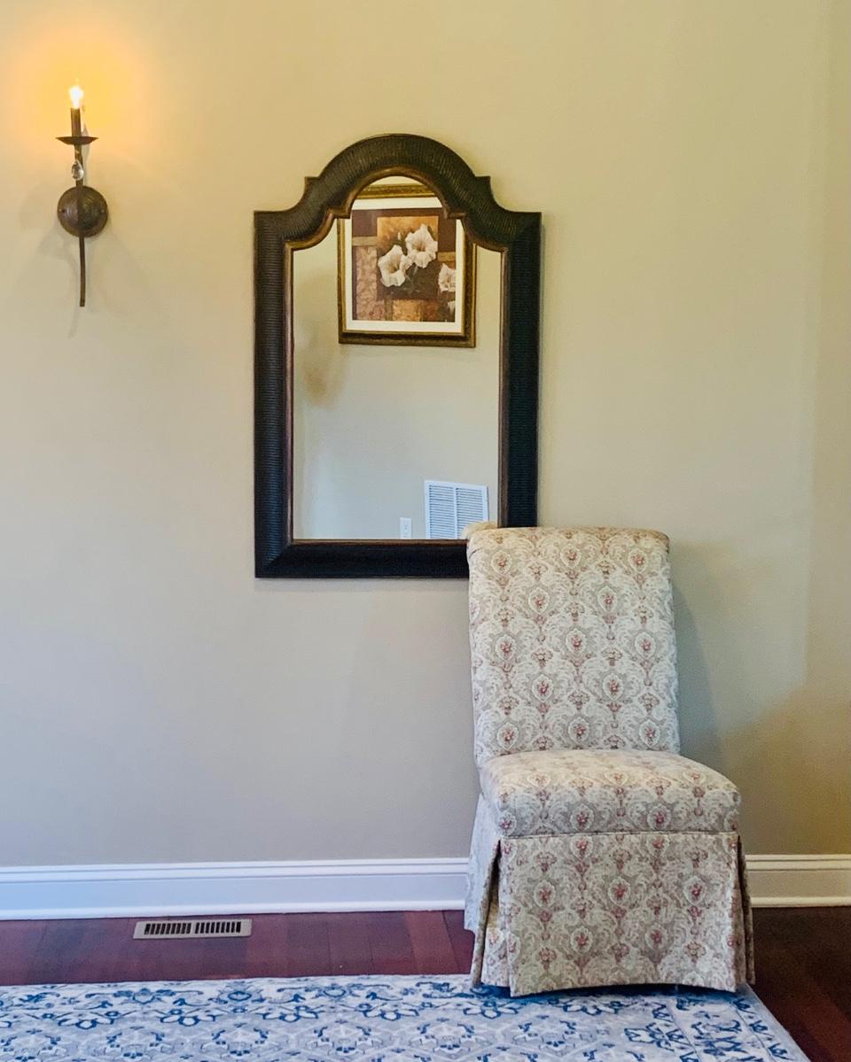 You are bidding on the mirror only - chair is pictured for dimensional purposes only.